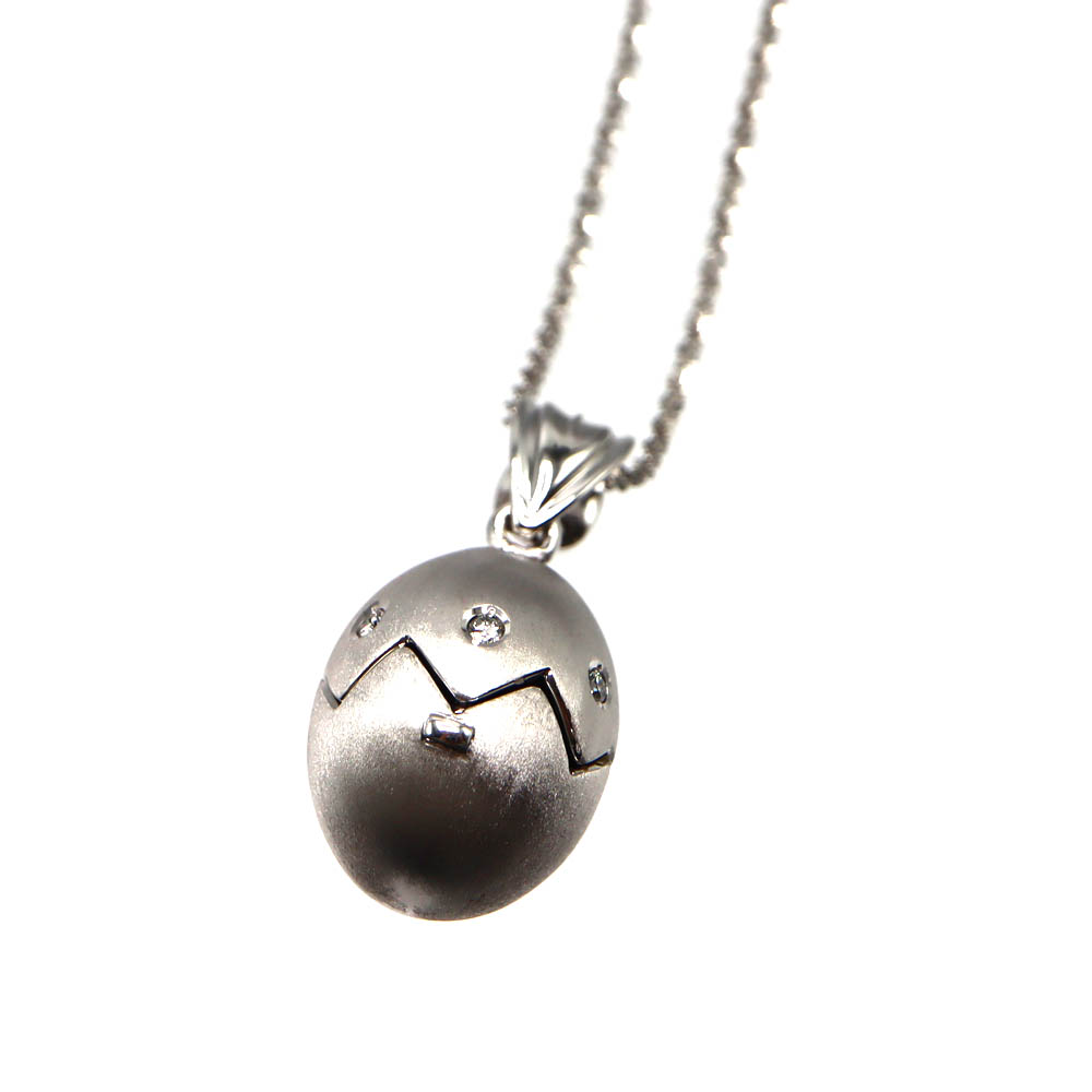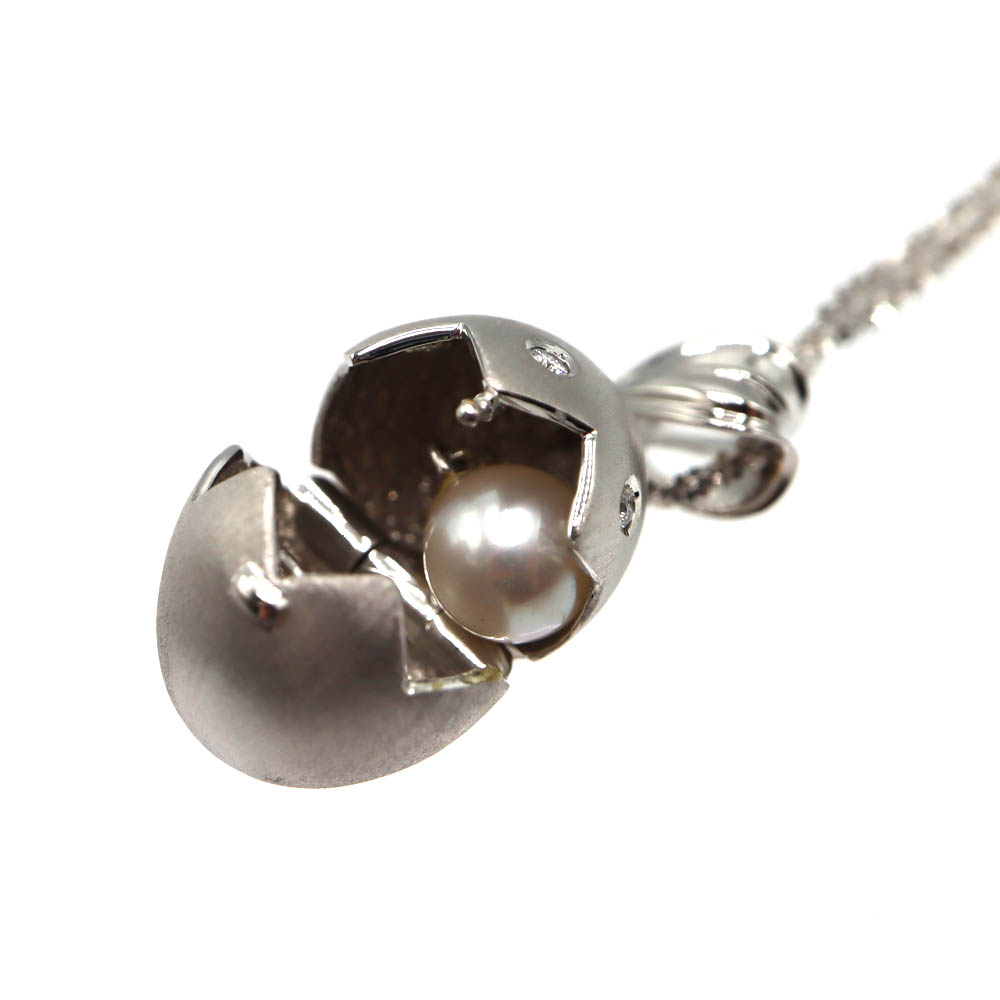 やわらかな艶をもつパールに、ダイヤモンド(0.04ct)をあしらった、タマゴ型トップのネックレスです。