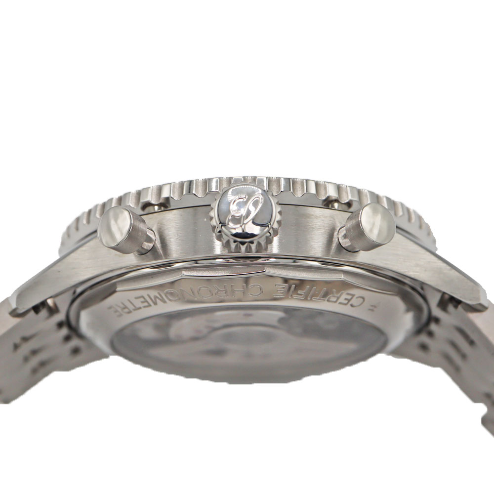 | 仕様 | 駆動方法:自動巻き キャリバー:ブライトリング01 パワーリザーブ:70時間 精度:日差+0~-1秒 防水:3気圧防水 機能:両方向回転ベゼル 機能:クロノグラフ/デイト表示 |