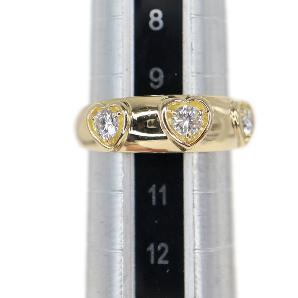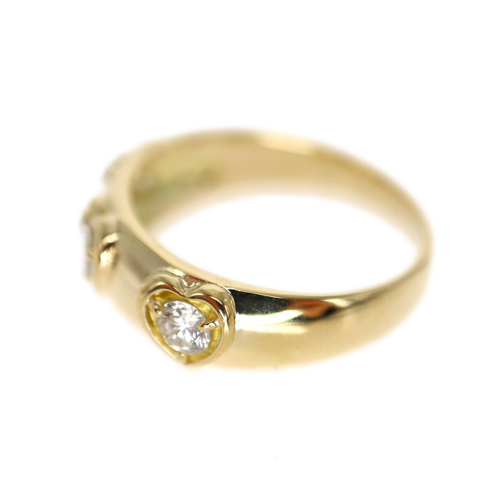 18金のリングに、ダイヤモンドがセッティングされた指輪です。 ダイヤの周りがハートにデザインされているので可愛らしいアクセントになっています。 お手持ちのリングと合わせて着けてもオシャレに楽しめます。