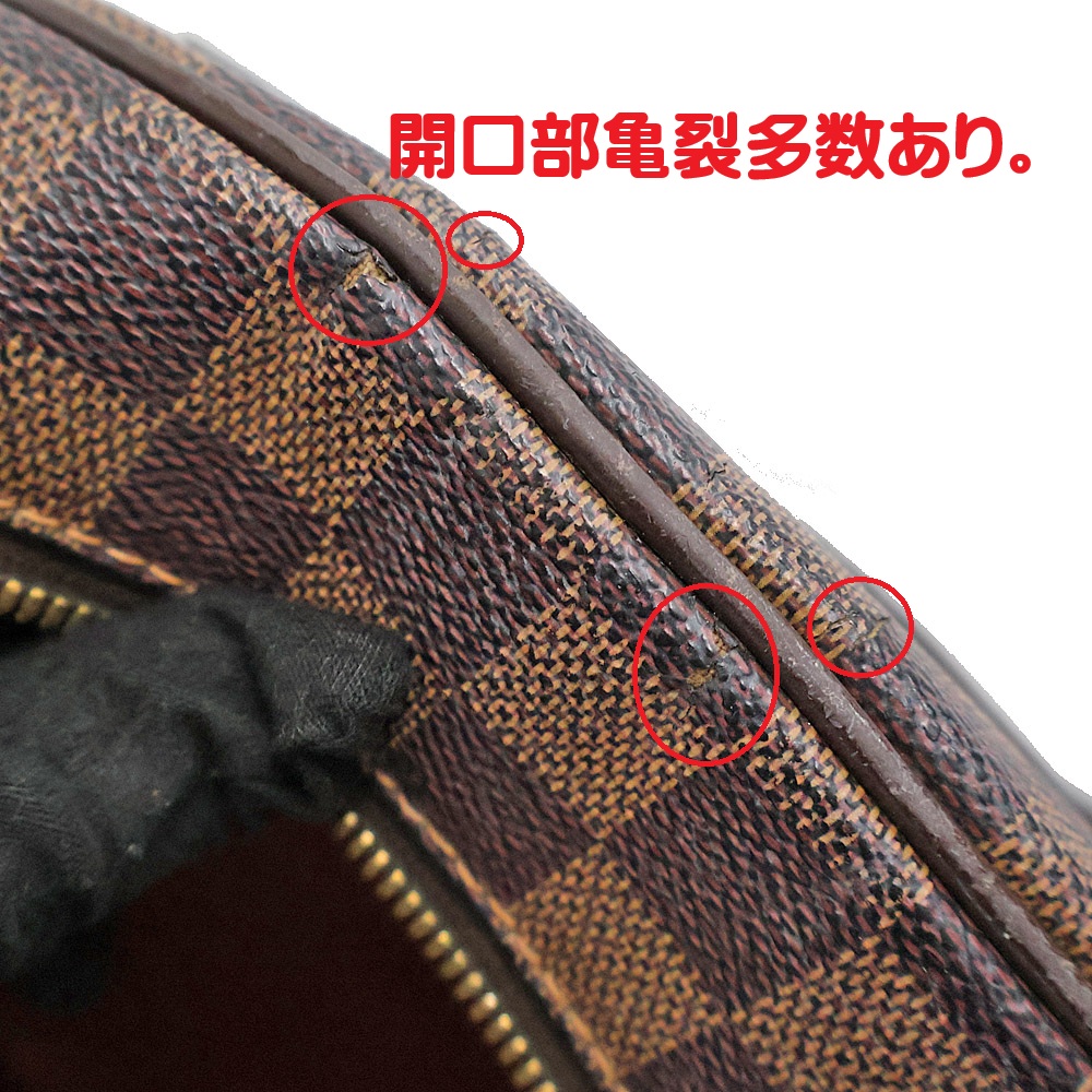 | 商品状態 | 【バッグ開口部のヒビ・めくれが強いです。】 ■ハンドル素材めくれあり。 ■バッグ内かなりニオイあり。(良いニオイ) ■開口部ヒビ・めくれがあります。 ■バッグ内汚れ・白くスレ汚れあり。 ■角スレあり。 ■ロゴレザー部分キズ・スレあり。 ■金具黒ずみ・キズあり。 ■バッグ表面所々白いモヤ汚れあり。 ■開閉ファスナーかなりかたいです。 ■型崩れがございます。 ※店頭にて同時販売中の為展示による多少のキズ・汚れは予めご了承ください。 |