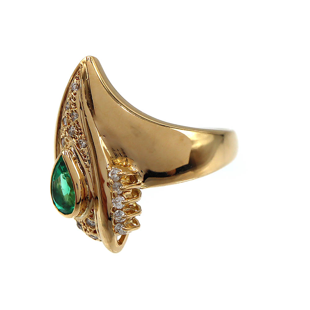 鮮やかなグリーンが美しいエメラルド0.44ctと、ダイヤモンド0.16ctをあしらったK18リングです。