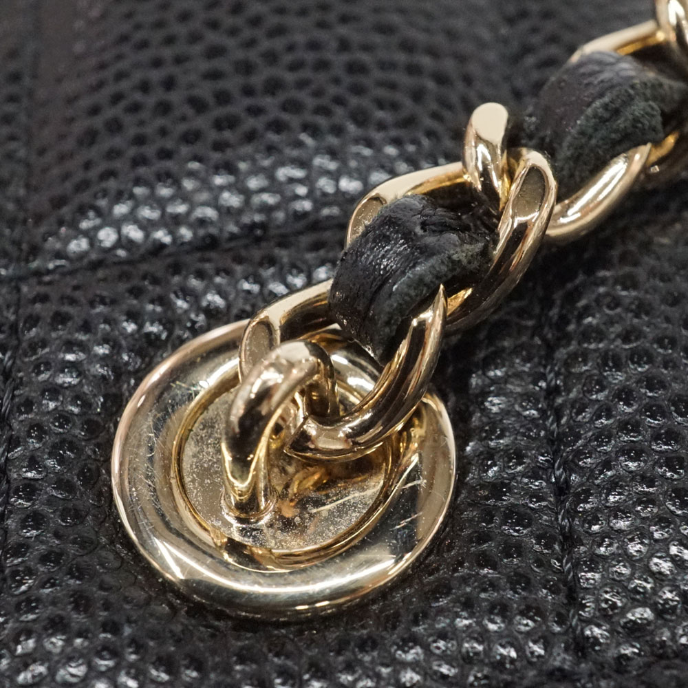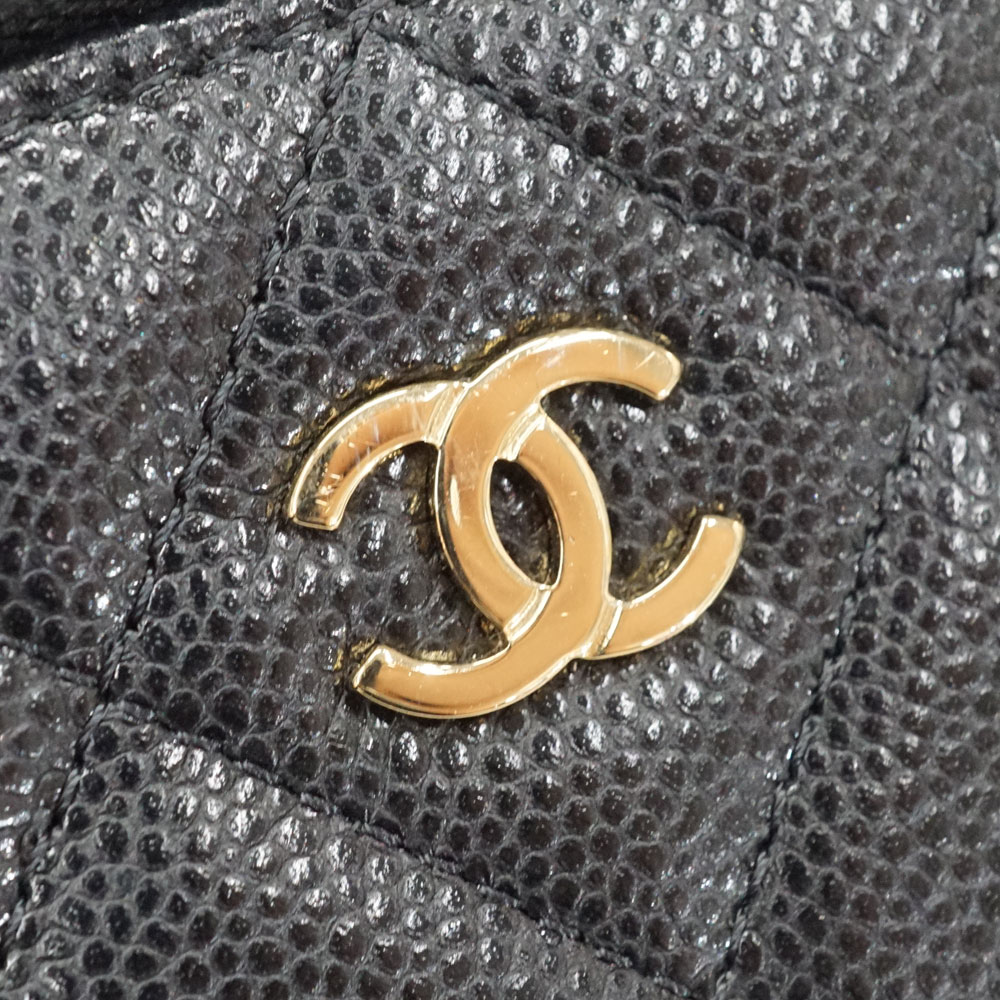 正面のココマークが印象的な可愛らしいお品物です。 シャネルの中でも人気のキャビアスキンの素材とブラック×ゴールドのカラー。 コスメポーチとしてお使い頂けます。 お探しの方はこの機会に是非いかがでしょうか。