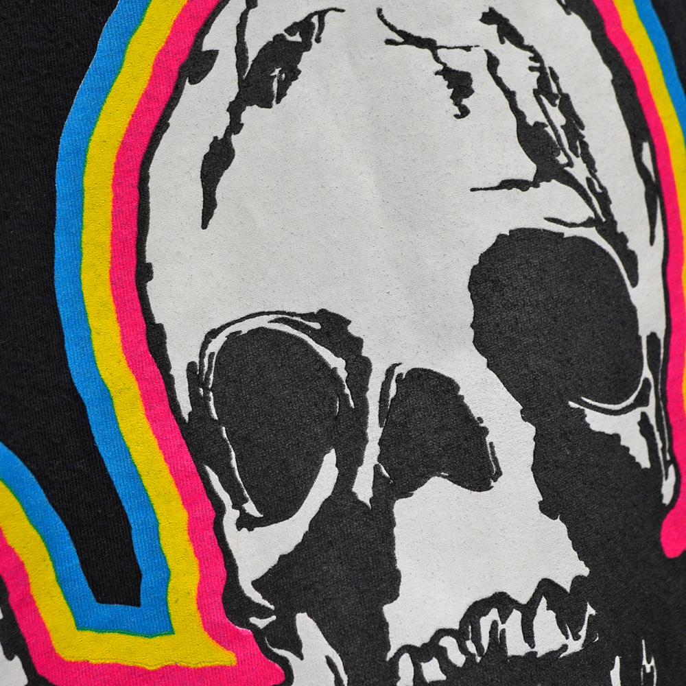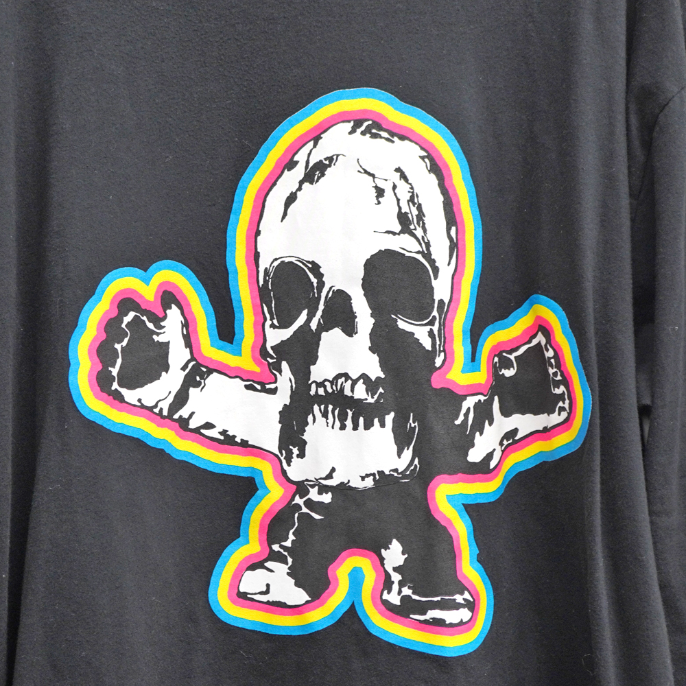 正面と背面にマルチカラーのドクロデザインが印象的なデザインの長袖Tシャツです。 存在感のあるデザインで着ているだけでお洒落なアイテムになります。