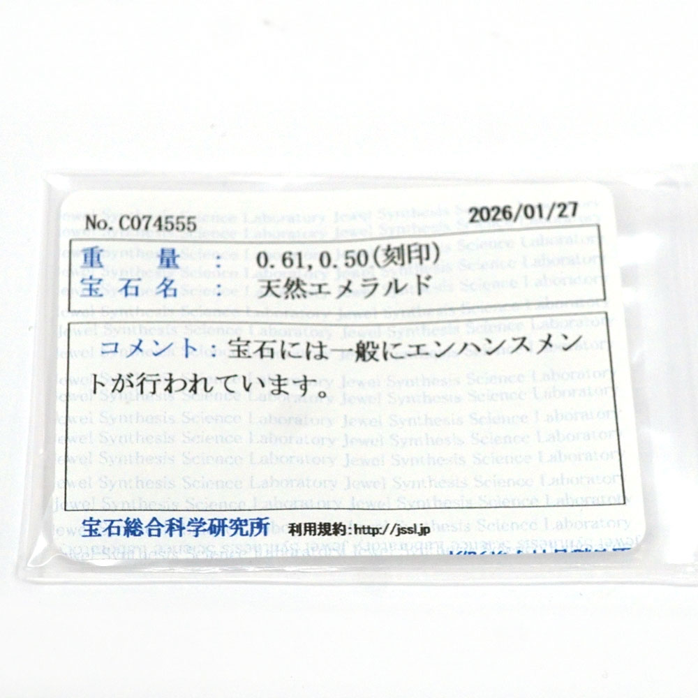 素材 | Pt900(プラチナ900) エメラルド0.61ct ダイヤモンド0.50ct |