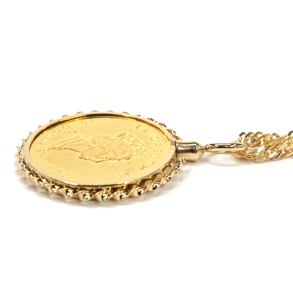 1/4ozのメイプルリーフコインがついたネックレスです。 長さやチェーンのデザインから女性が着用して頂いても問題ありません。 首元のアクセントにいかがでしょうか。