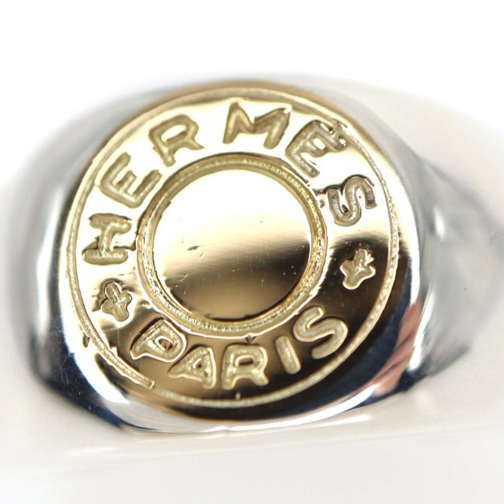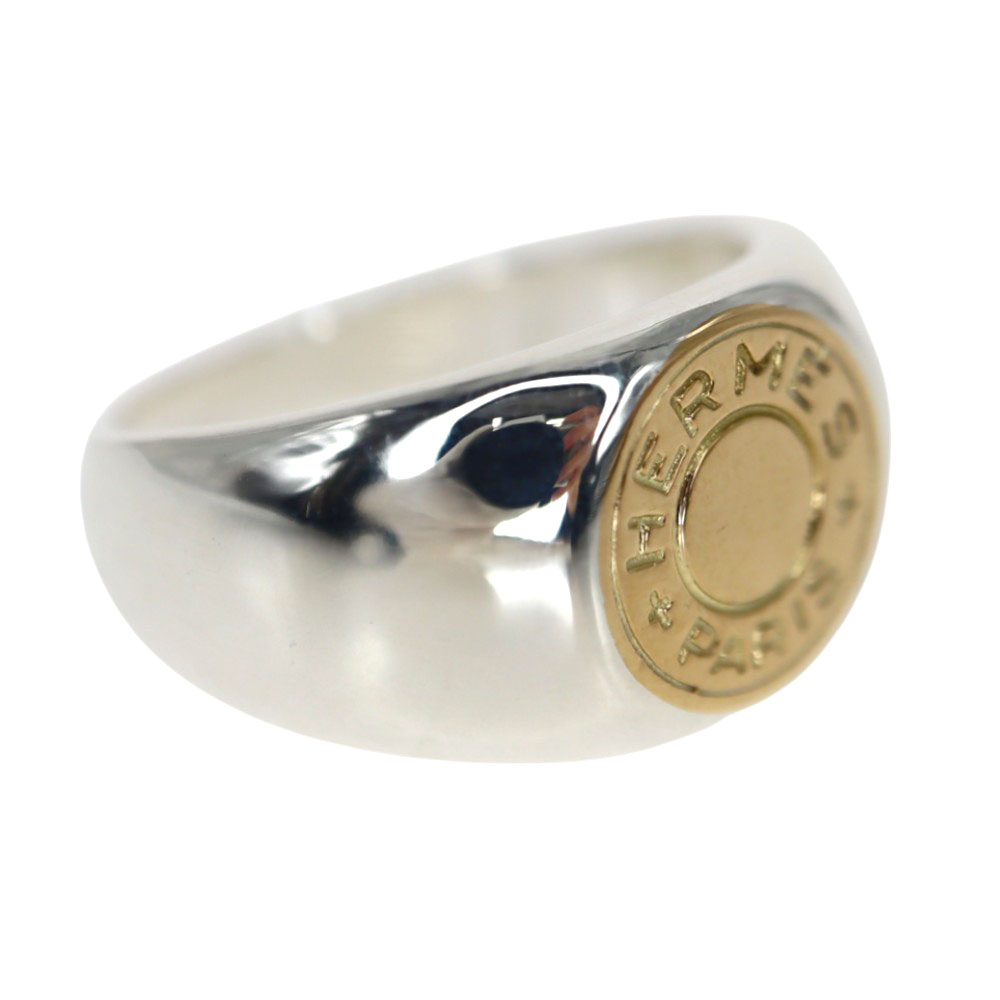 アイコニックなセリエが正面にデザインされたエルメスらしい指輪。 シルバーカラー×ゴールドカラーの華やかなアイテムで存在感抜群です。 重量感もあるので、これ一つで手元のアクセントになります。
