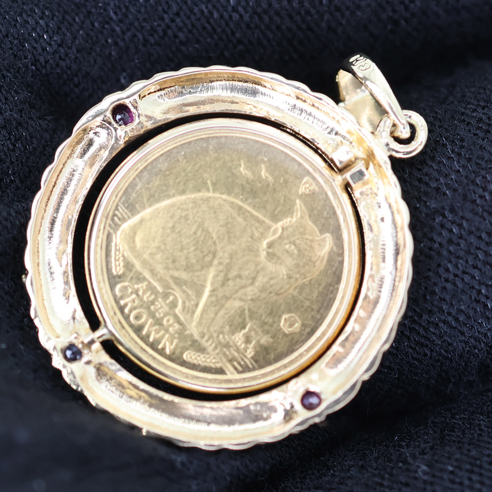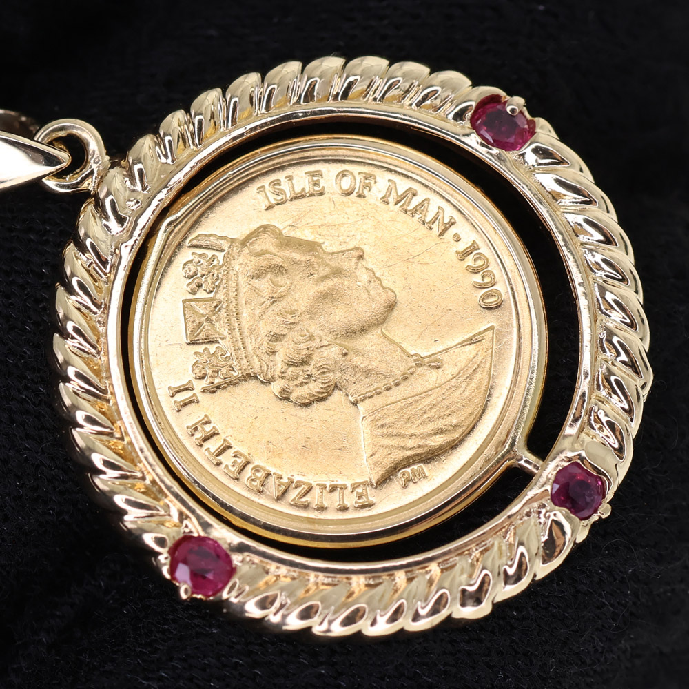 | 商品説明 | K24/K18【24金/18金】マン島キャット1/25ozコイントップルビー付のご紹介です。