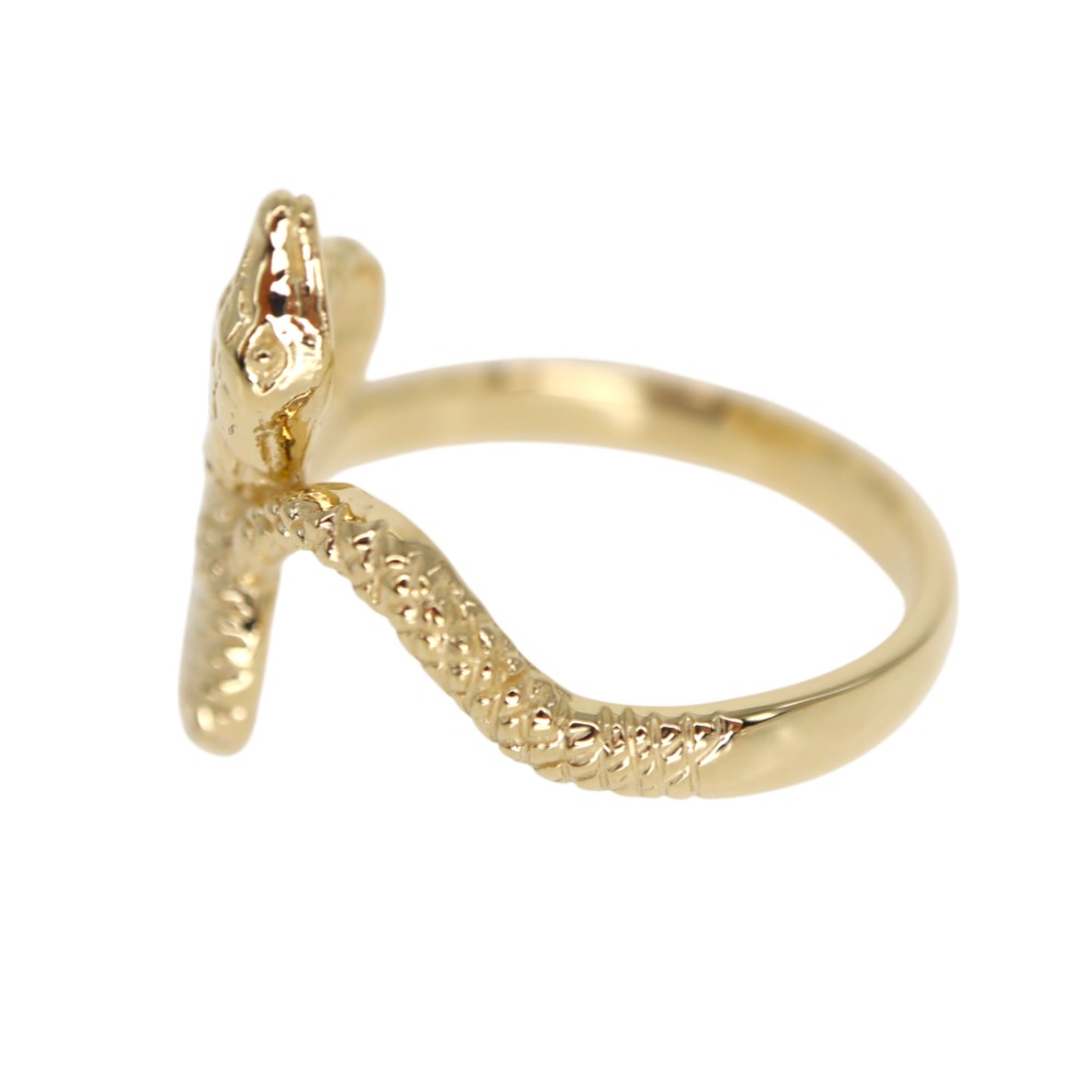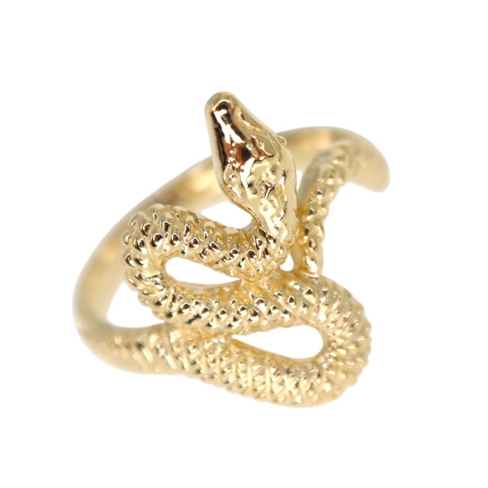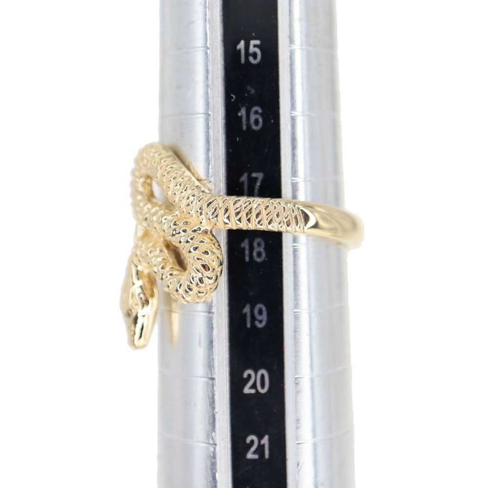 ヘビが巻き付いているようなデザインが特徴的な指輪です。 細部までこだわられたデザインで、個性的なアクセントとしてぴったりです。