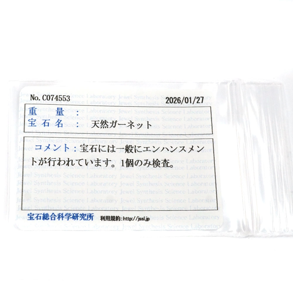 | 使用宝石 | ガーネット :重量不明 ダイヤモンド:重量不明 |