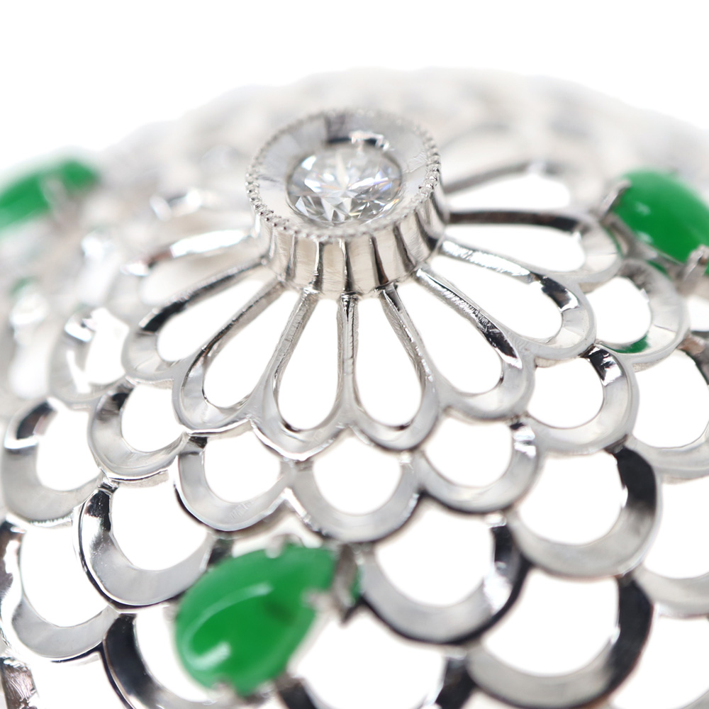 | 商品説明 | Pt900【プラチナ900】 ダイヤモンド/ひすい トップのご紹介です。 花のモチーフデザインの大き目なペンダントトップです。 中央にセッティングされたダイヤモンドとグリーンカラーが目を惹くひすいが散りばめられたデザインで上品なアイテムとなっております。 お探しの方はこの機会に是非いかがでしょうか。