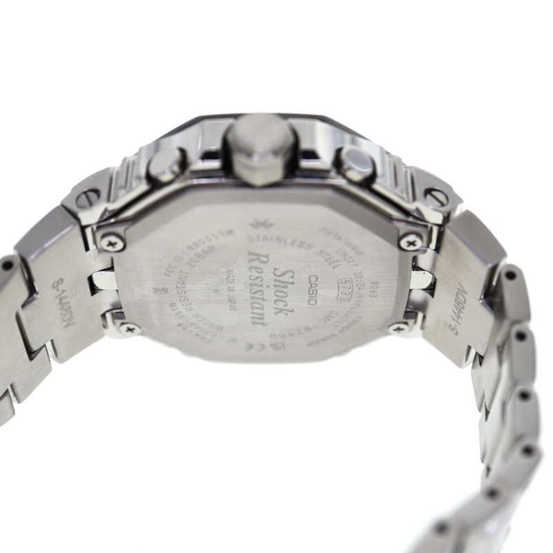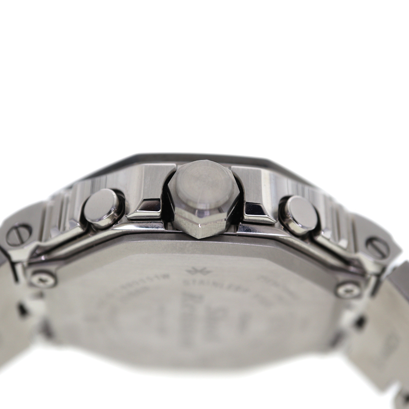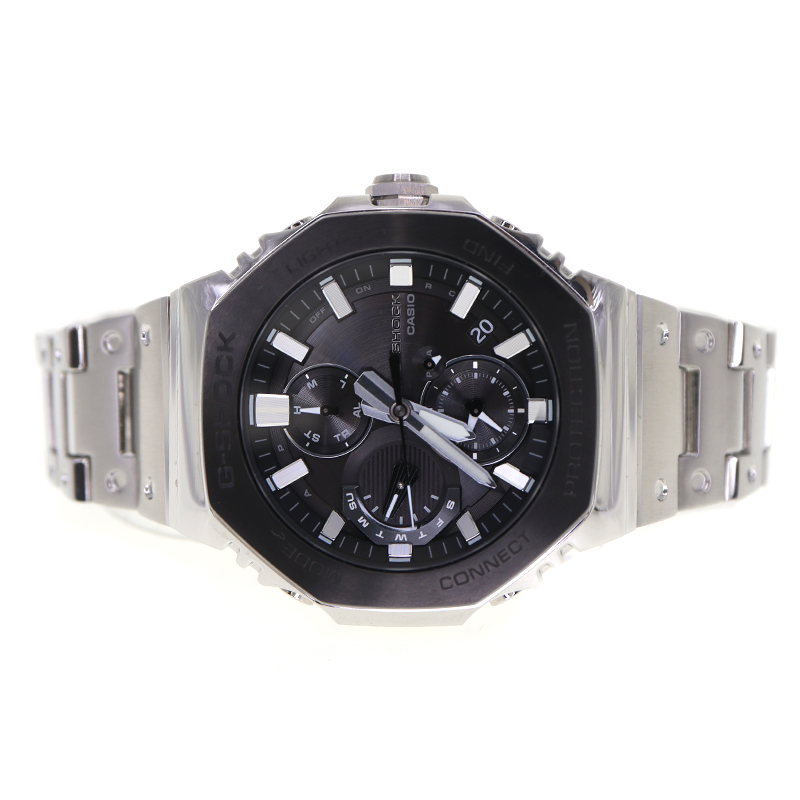 G-SHOCKの八角形アイコンデザインを踏襲したフルメタルモデルです。 ブラックIP加工を施したステンレスケースとブレスレットが精悍な印象を与え、シンプルながら存在感のある外観です。 モバイルリンク機能によるスマートフォン連携で自動時刻修正やワールドタイムが可能、タフソーラー搭載で電池交換の手間も軽減。 耐衝撃構造と20気圧防水を備え、アウトドアや日常使いでも安心して使用できます。 日本製ならではの仕上げと堅牢性を両立し、スタイルと機能性を高いレベルで融合させた一本です。 お探しの方はこの機会にぜひいかがでしょうか。