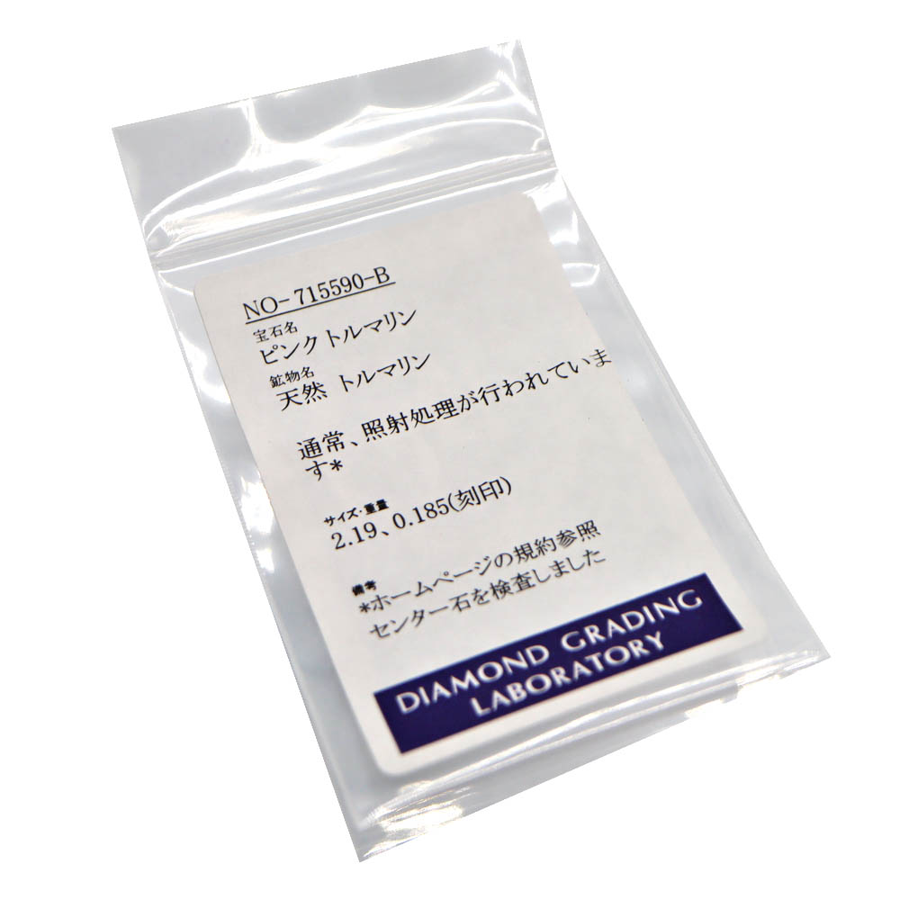 | 素材 | Pt900/ピンクトルマリン2.19ct/ダイヤモンド0.185ct |