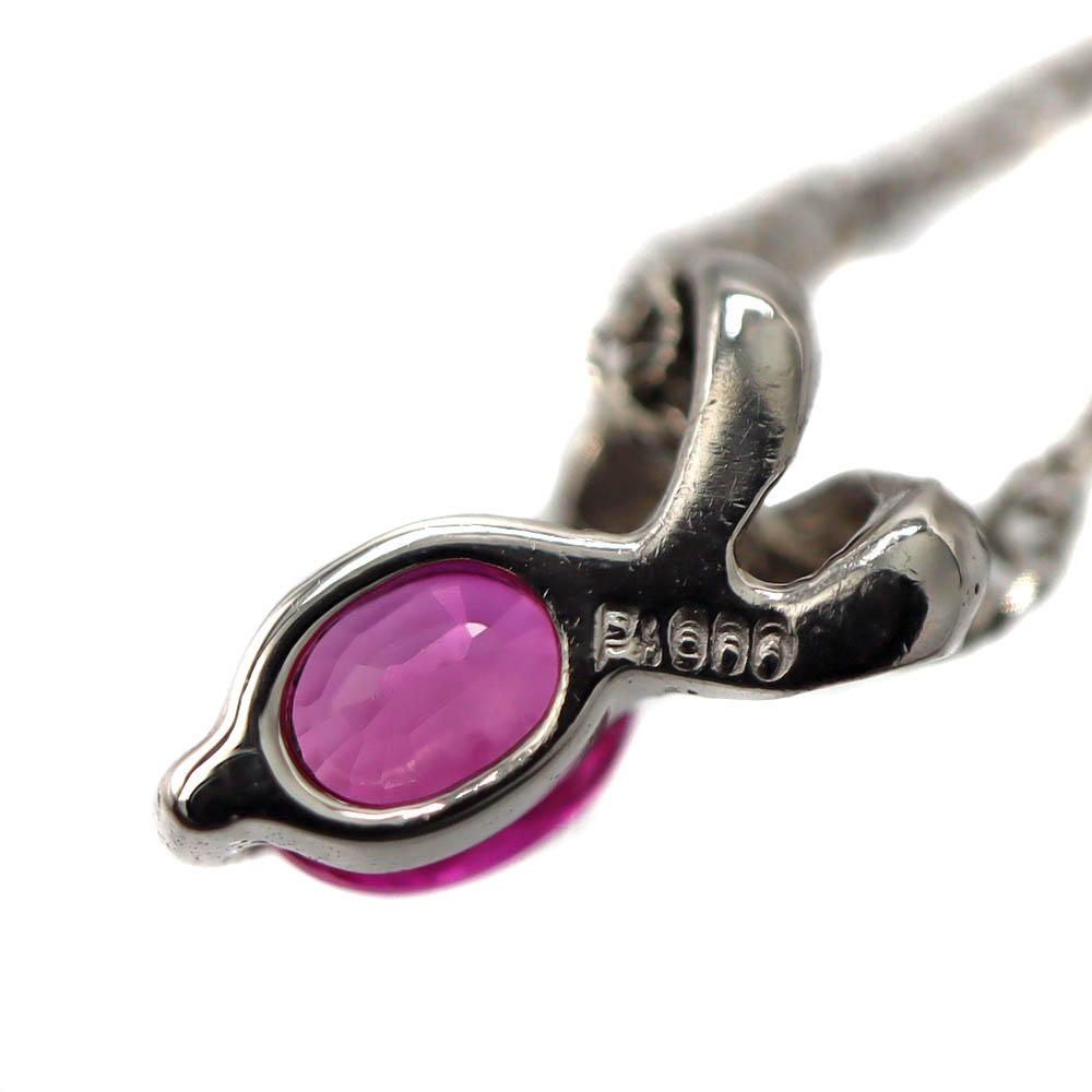 鮮やかなルビーが胸元で美しく輝く、プラチナのネックレスです。