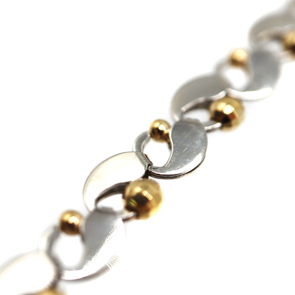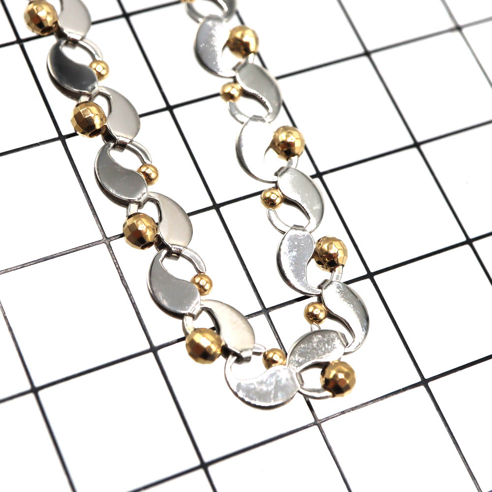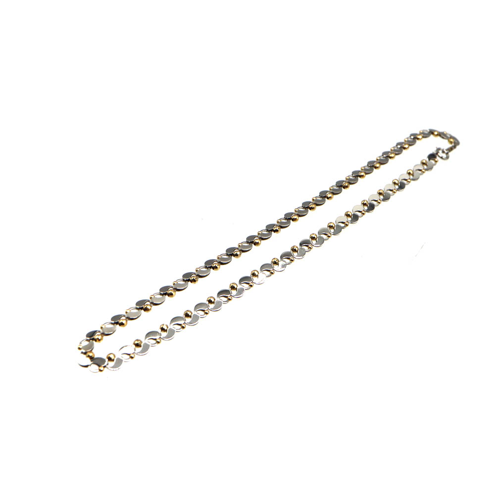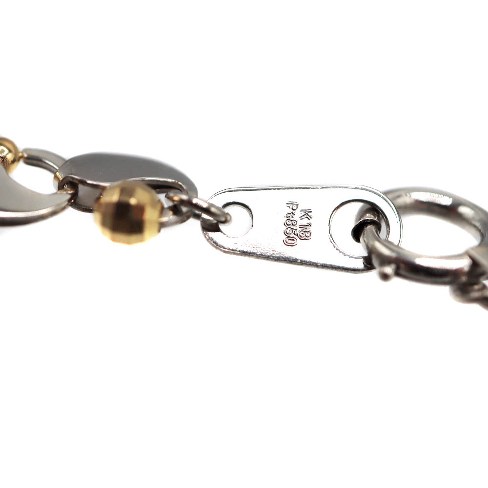 K18ゴールドの華やかな輝きと、Pt850プラチナの上品で落ち着いた光沢を組み合わせたデザインネックレスです。