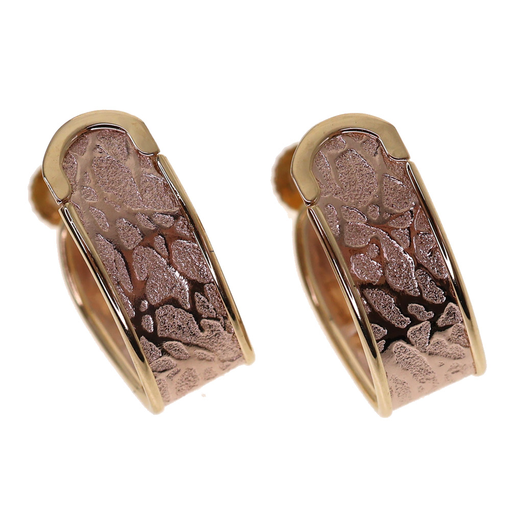 ハワイアンジュエリーを連想するデザインが施されたイヤリング。 中央はピンクカラーをあしらっております。 この機会に是非いかがでしょうか。