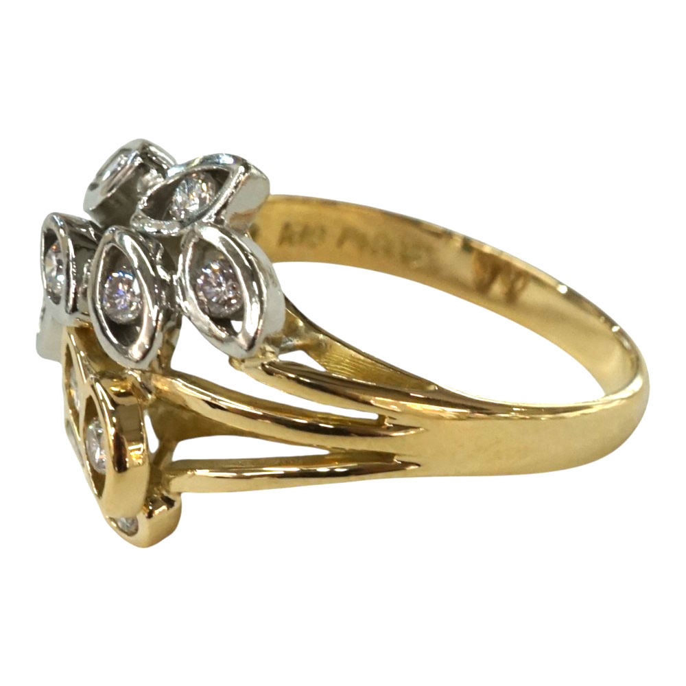 ダイヤモンドがセッティングされたリーフのデザインで存在感のあるリングです。 お手元のアクセントにおすすめです。 是非いかがでしょうか。