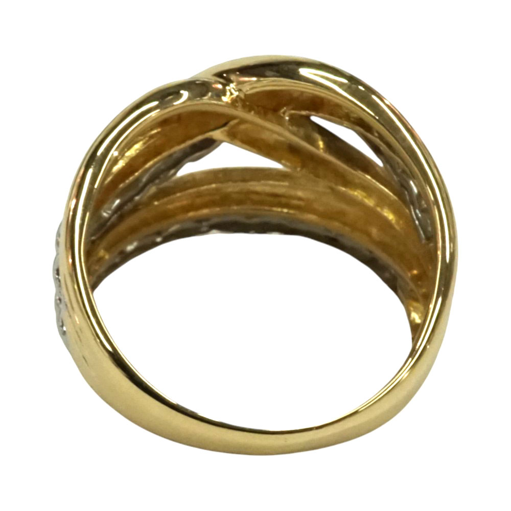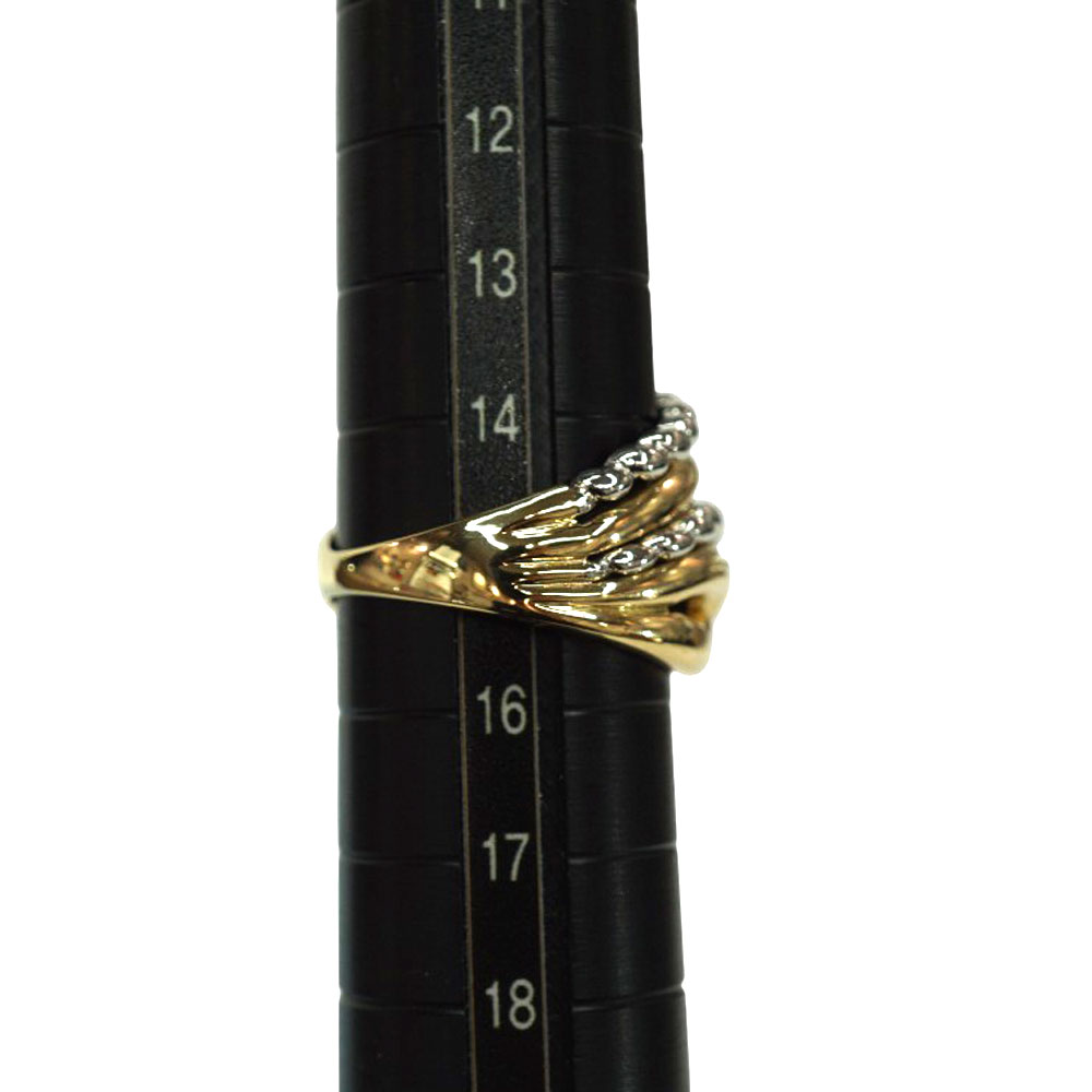 ダイヤモンドがセッティングされたリーフのデザインで存在感のあるリングです。 お手元のアクセントにおすすめです。 是非いかがでしょうか。