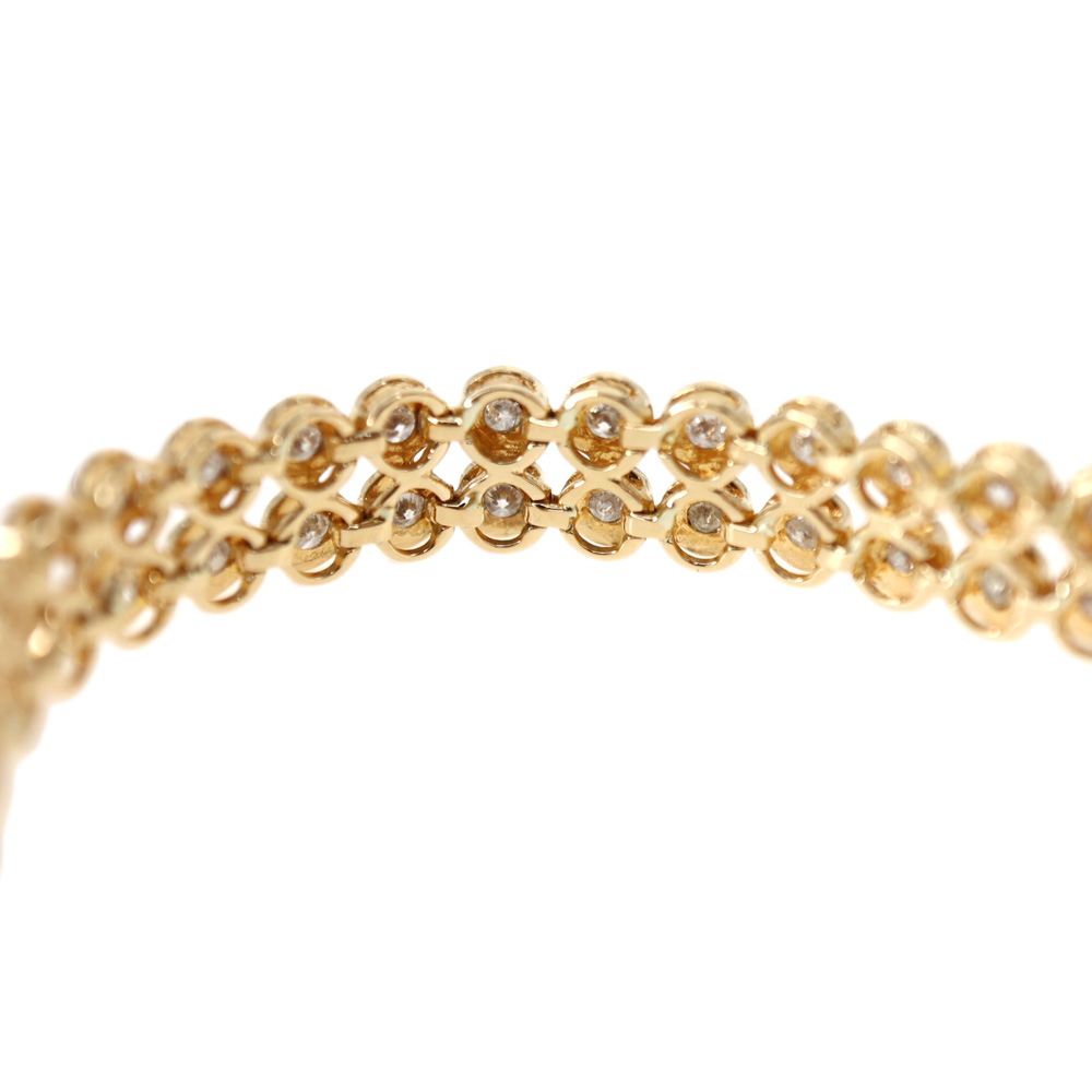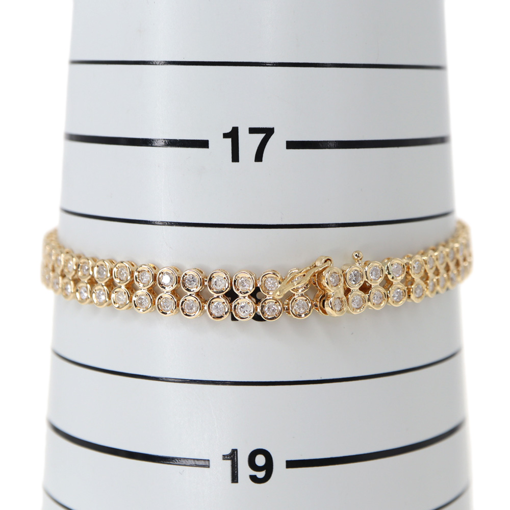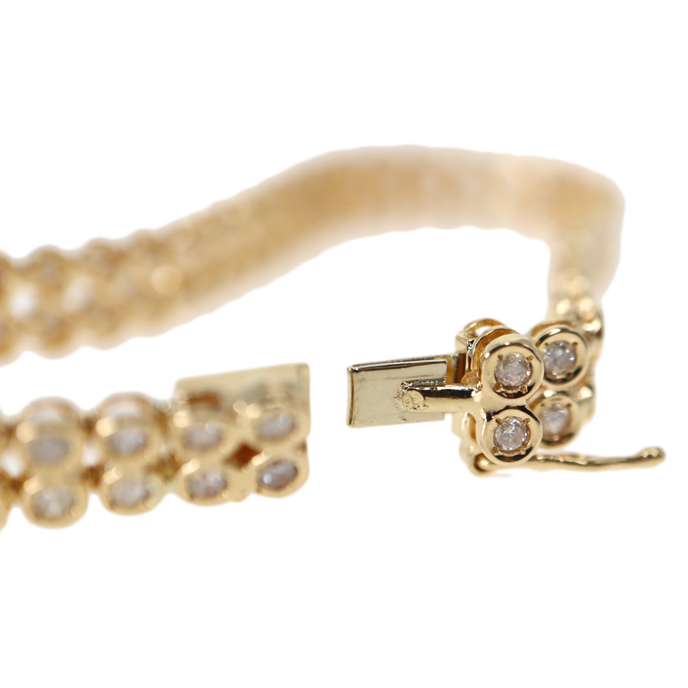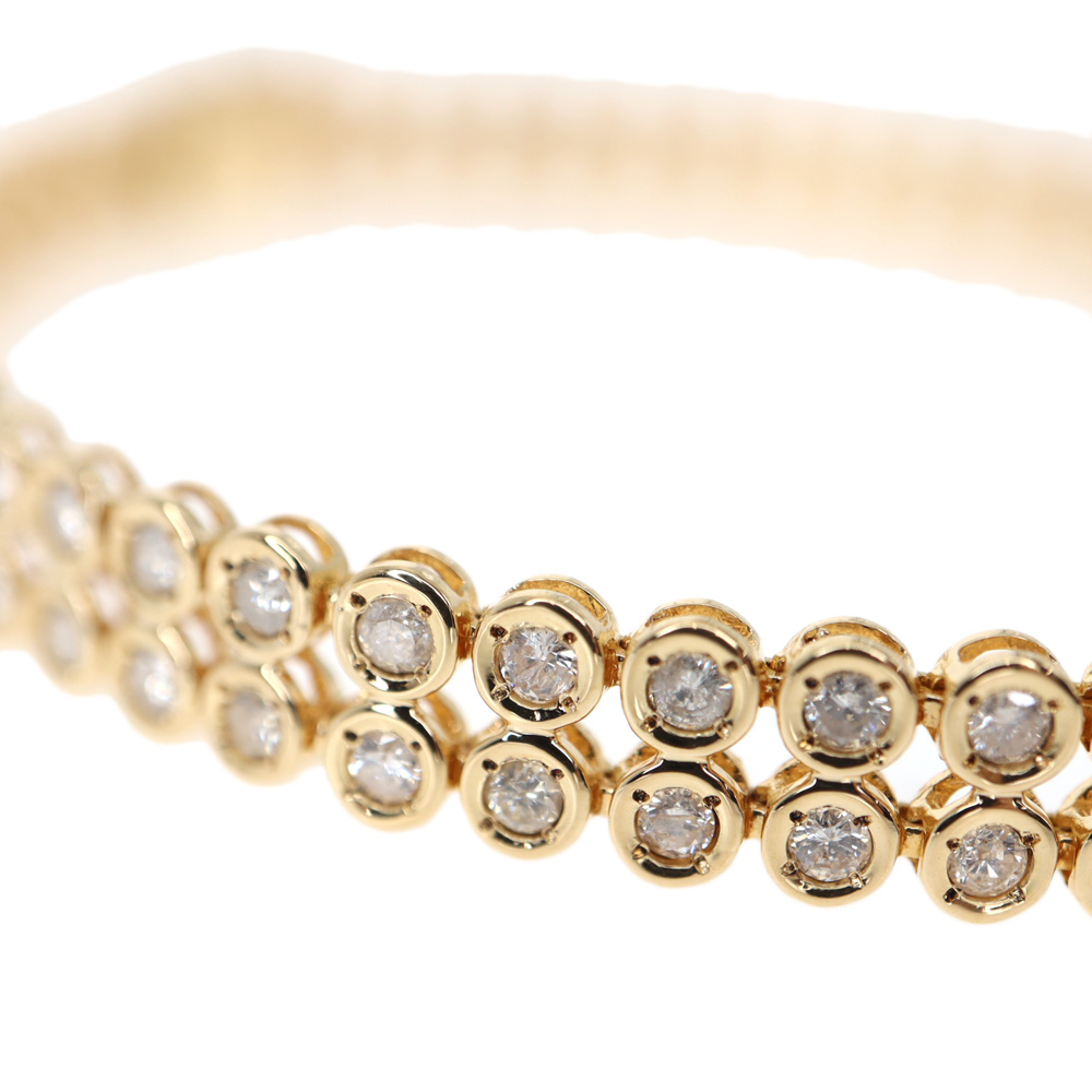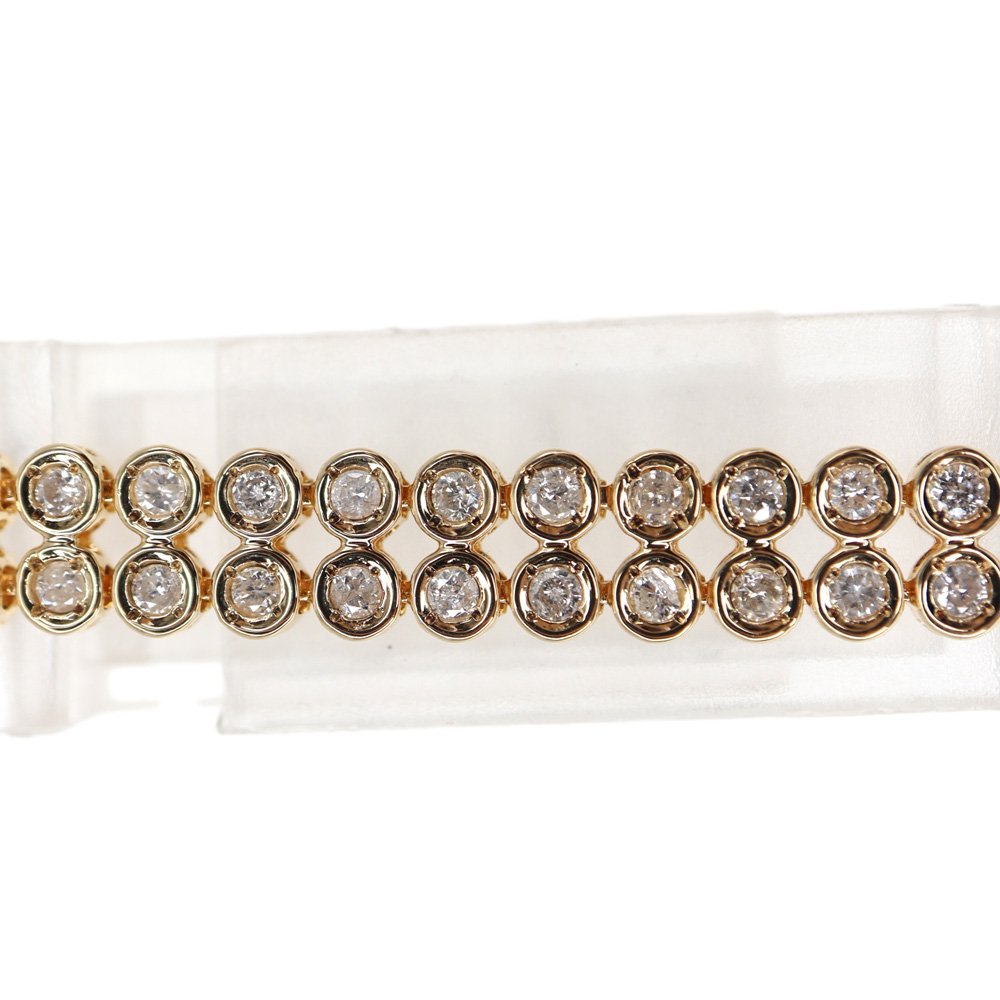 2列を埋め尽くすようにダイヤモンドがセッティングされた重厚感のあるテニスブレスレットです。 ゴールド×ダイヤモンドの組み合わせで華やかな印象のお品となっておりシーン問わずお使い頂けます。