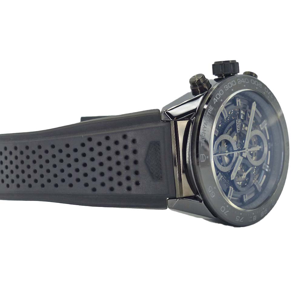 | 仕様 | 自動巻き キャリバー:ホイヤー01 パワーリザーブ:50時間 精度:+10~+15秒/日 防水:100m防水 クロノグラフ・スケルトン・日付表示 |