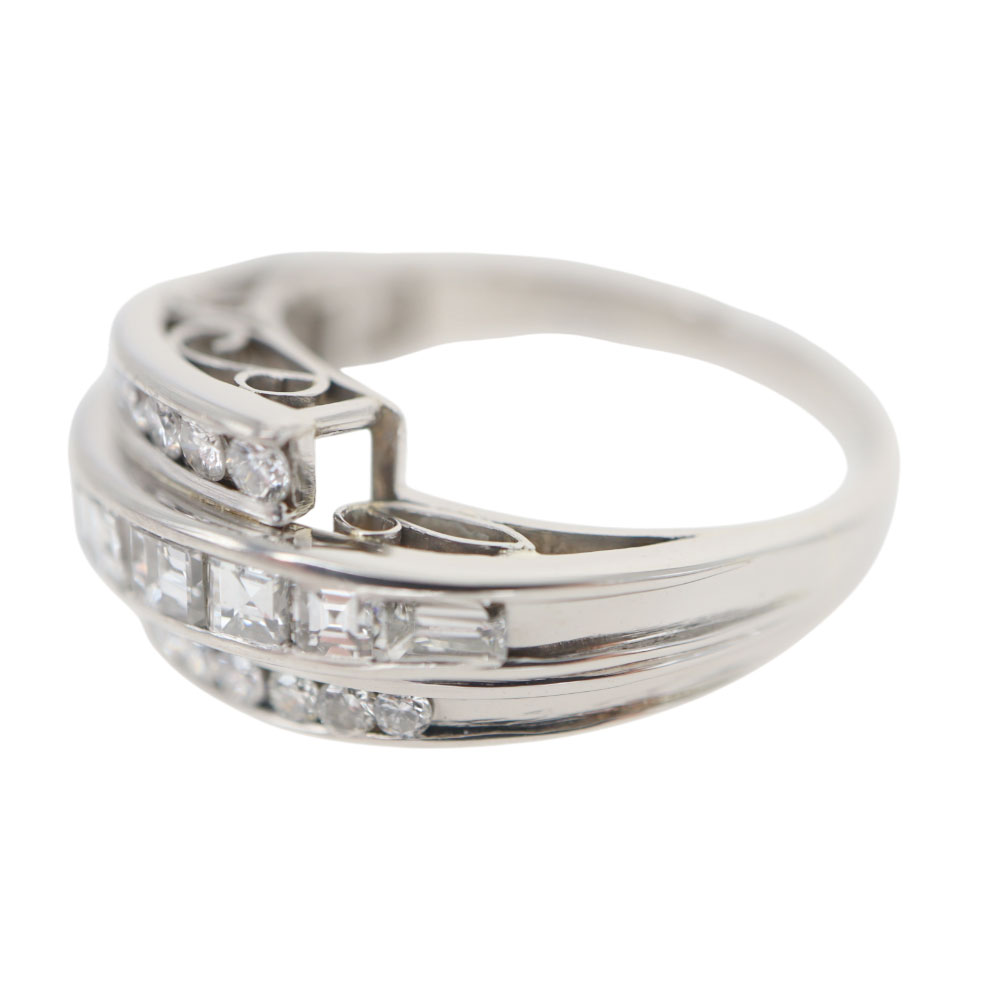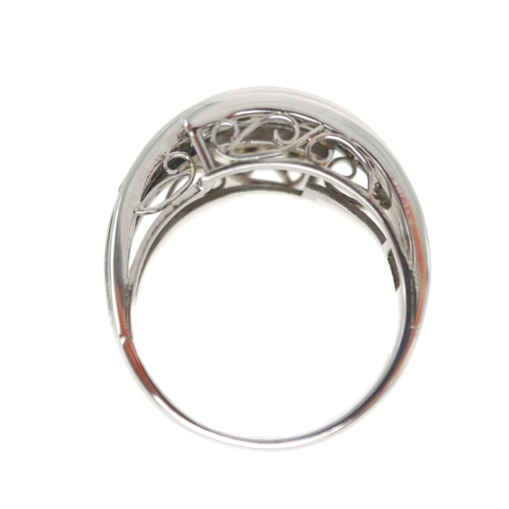 まるで3つのリングを重ね付けしているかのようなボリュームのリング。 上から見たデザインもレースのようでどこから見ても魅力的です。