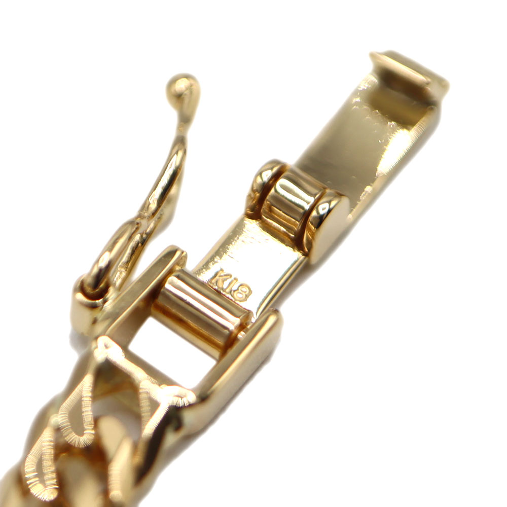 【K18刻印有】 【999.9刻印有】 K18チェーンにK24(純金)1gミニバーがあしらわれた、高級感あふれるブレスレットです。 純金ならではの深みのある輝きと、K18のしなやかな光沢が美しく調和し、上品な印象を演出します。 シンプルなデザインながらも存在感があり、普段使いから特別なシーンまで幅広くお使いいただけます。 資産性とデザイン性を兼ね備えた、贈り物にもおすすめのジュエリーです。 この機会に是非いかがでしょうか。