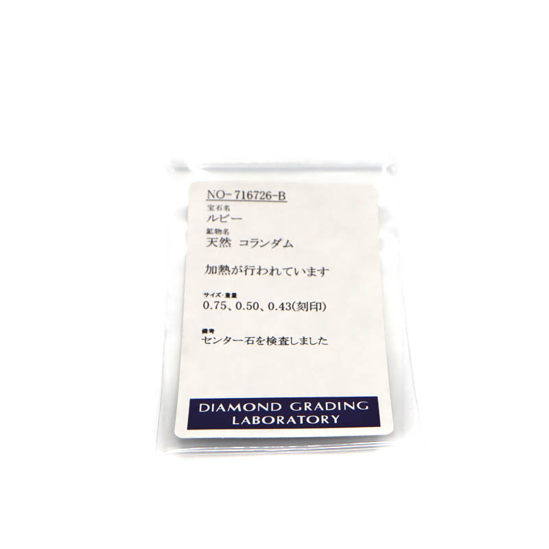 | 素材 | K18(ゴールド)/R0.75、0.50ct(ルビー)/D0.43ct(ダイヤモンド) |