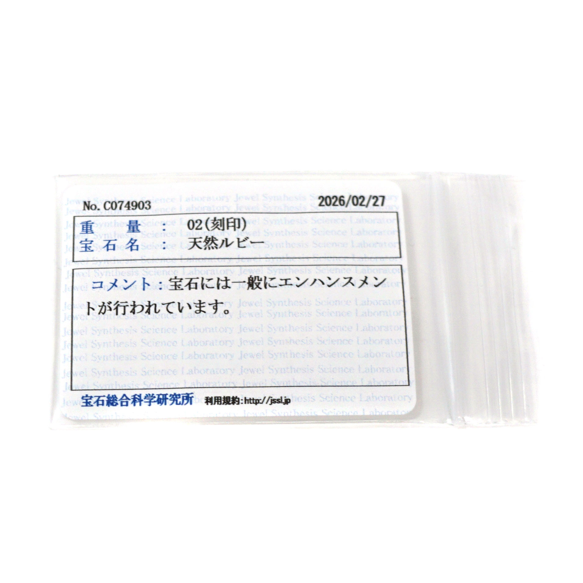 | 素材 | K18(ゴールド) Pt900(プラチナ) D0.02ct(ダイヤモンド) ルビー |