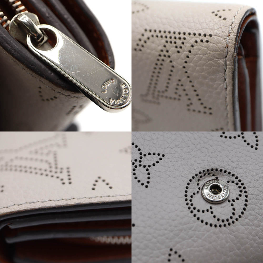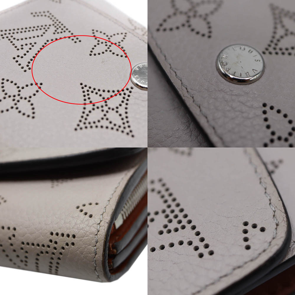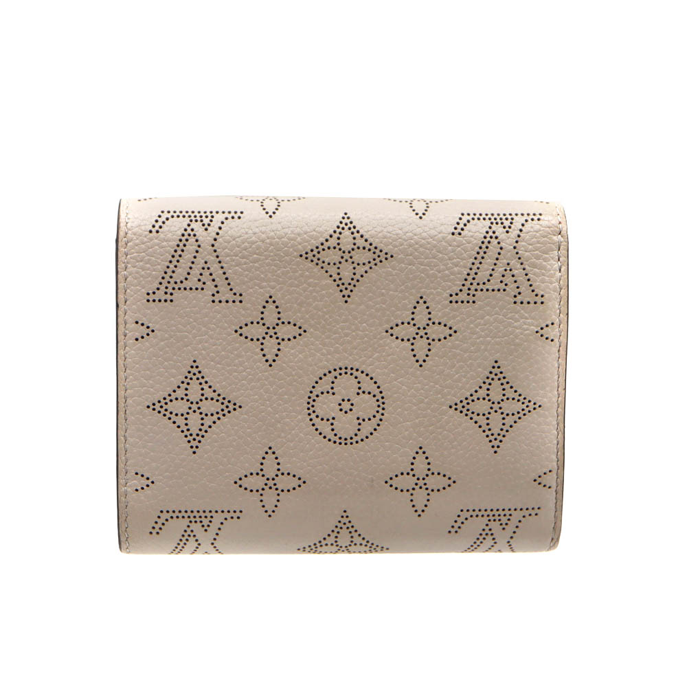 柔らかなマヒナレザーにパンチングで表現されたモノグラムパターンが特徴で、上品で洗練された印象を与えるデザイン。
