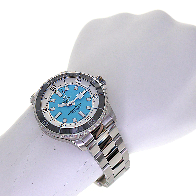 | 商品説明 | ■1960年代の伝説的モデル「スローモーション」のデザインを現代的に再解釈し、2022年に誕生した新型スーパーオーシャン。 なかでも目を引くのが、波打ち際のような美しさを放つこのターコイズブルー文字盤です。 44mmの堂々たるケースサイズは、屈強なダイバーズウォッチとしての信頼感を感じさせると同時に、計算された薄さによってシャツの袖口にも驚くほど馴染みます。 幅広の針とインデックスにはスーパールミノバが施され、深海でも都会の夜でも圧倒的な視認性を確保。 マリンスポーツの相棒としてはもちろん、ビジネスシーンのジャケパンスタイルに鮮やかなアクセントを添える、まさに「陸・海・空」を制するブライトリングらしい万能な一本です。 ※尚、当サイトの販売金額より店頭での販売金額の方をお安く設定させて頂いております。予め、ご了承下さいませ。(一部セール品等を除く) |