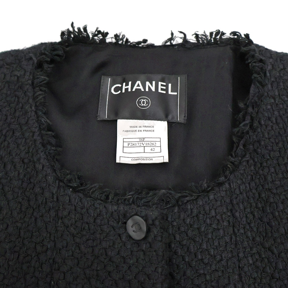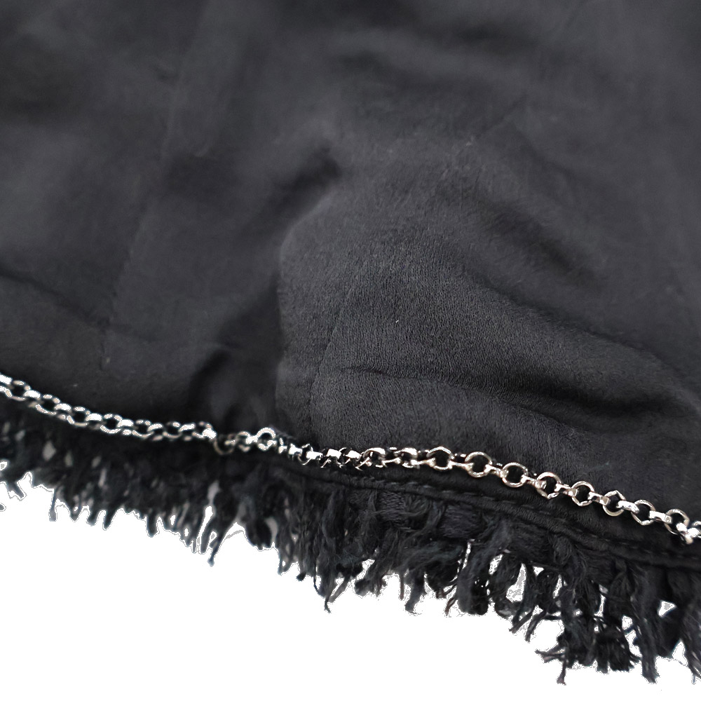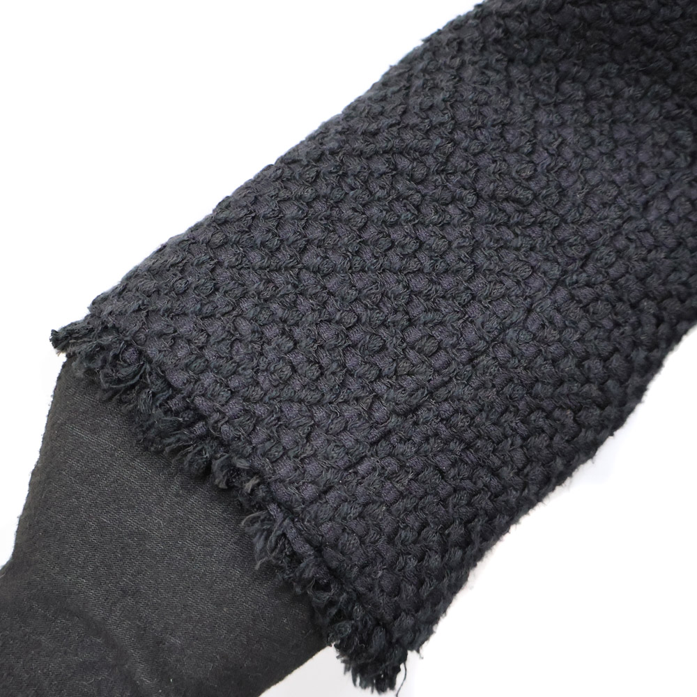 ブラックカラーで合わせやすく、 ノーカラーが非常にスタイリッシュです。 袖口はフリンジデザインでカジュアルな印象。 この機会にぜひいかがでしょうか。