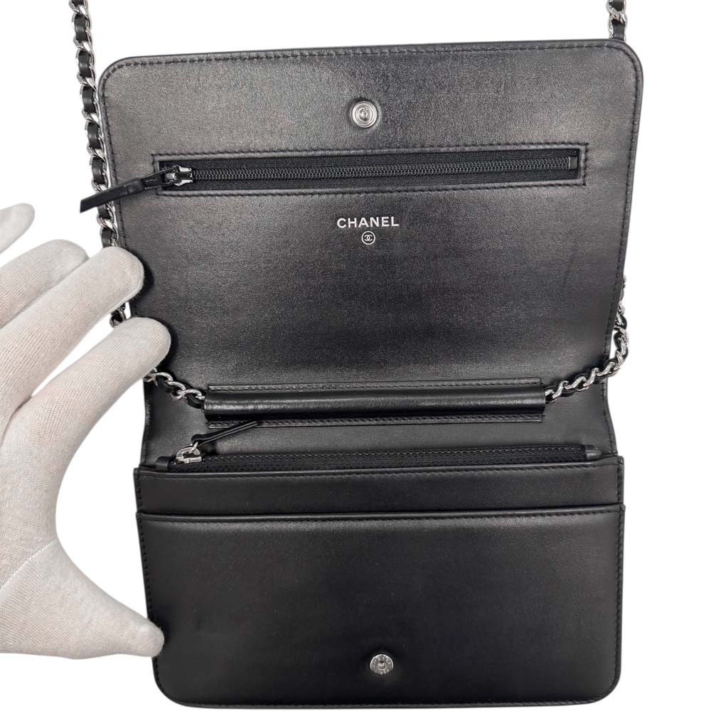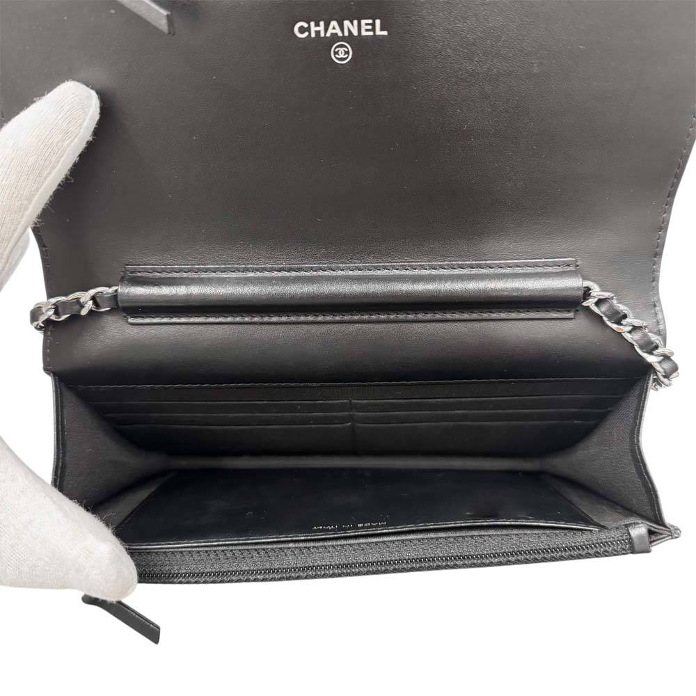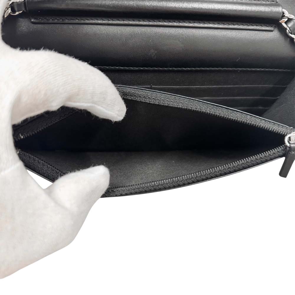 | 商品説明 | シャネル A82236 カメリア エンボス チェーンウォレットは、ブランドの象徴ともいえるカメリアモチーフをエンボス加工で施した、洗練されたデザインが魅力の逸品です。高品質なレザーに立体感のある花模様が浮かび上がり、華やかさと気品を演出します。内部にはカードスロットやファスナー付きコインポケット、紙幣用コンパートメントなどが備わり、見た目の美しさと実用性を兼ね備えています。付属のチェーンストラップは取り外しが可能で、ショルダーウォレットとしてもクラッチバッグとしても使える2WAY仕様。日常のお出かけから特別なシーンまで幅広く活躍します。コンパクトながらも使いやすい設計で、シャネルらしい上品さを日々のスタイルにプラスできるチェーンウォレットです。 |