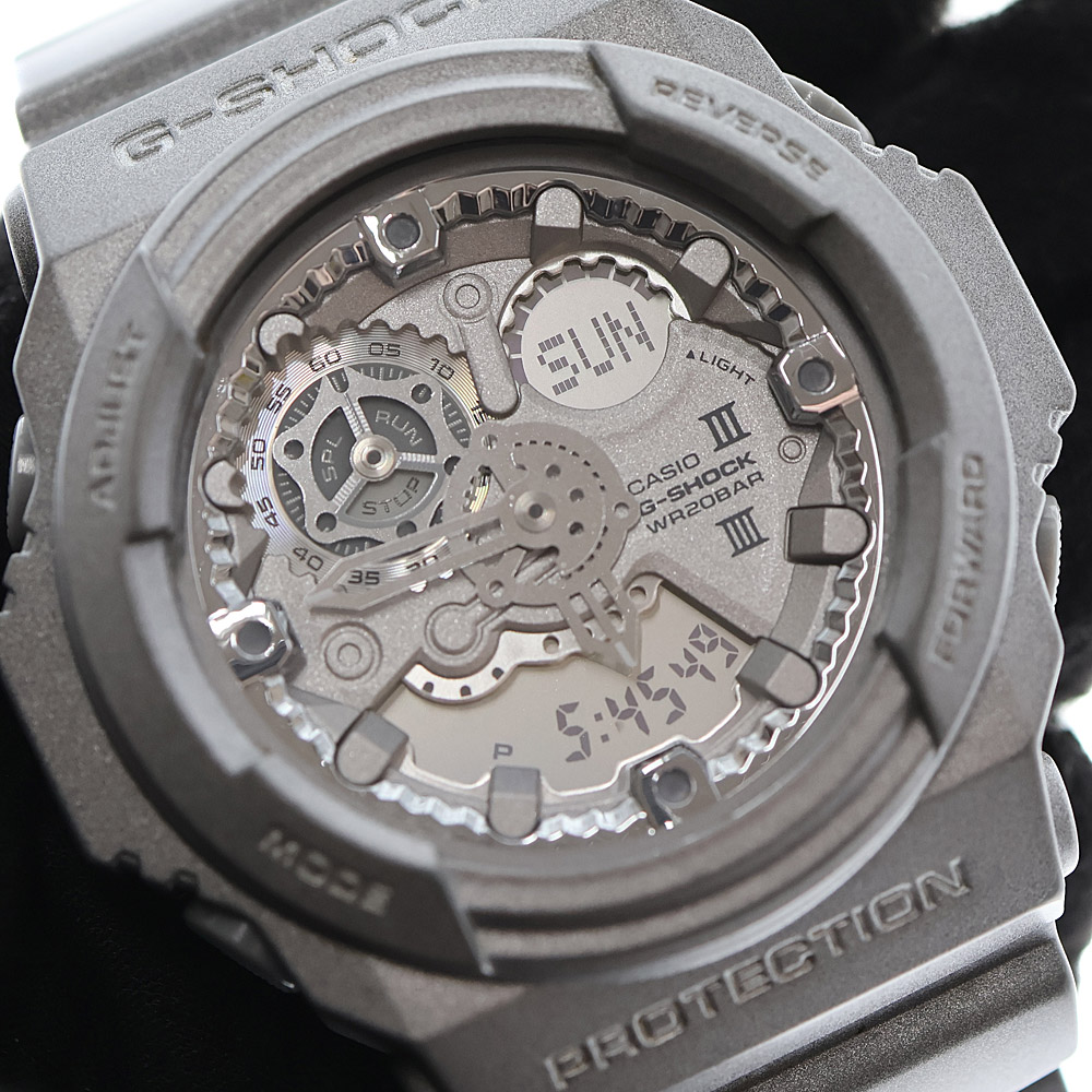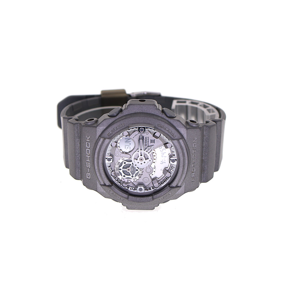 CASIOの人気シリーズG-SHOCKとフランスのファッションブランド 「Maison Martin Margiela(メゾン マルタン マルジェラ)」がコラボした、 限定モデル「GA-300MMM-8ADR」。世界3000本限定で発売された希少なモデルで、 シルバーカラーを基調とした個性的なデザインが特徴です。 ショックレジスト構造により高い耐衝撃性能を備え、20気圧防水やLEDライト、 ワールドタイム、ストップウォッチ、アラームなど多彩な機能を搭載。
