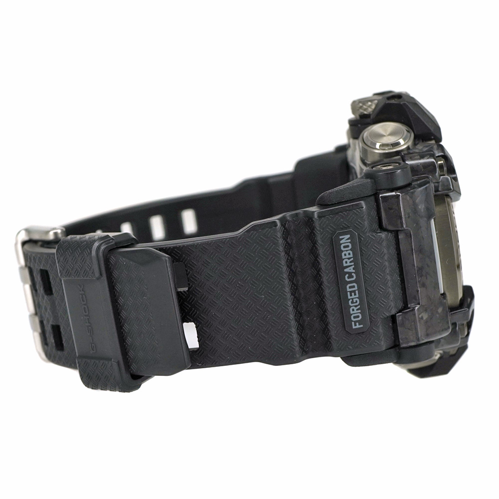 樹脂の中にカーボン繊維を練り込み、金型で熱プレスし固めて成形したフォージドカーボンベゼルと、カーボンコアガード構造のケースにより小型化を実現。