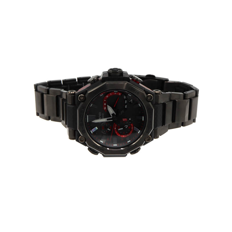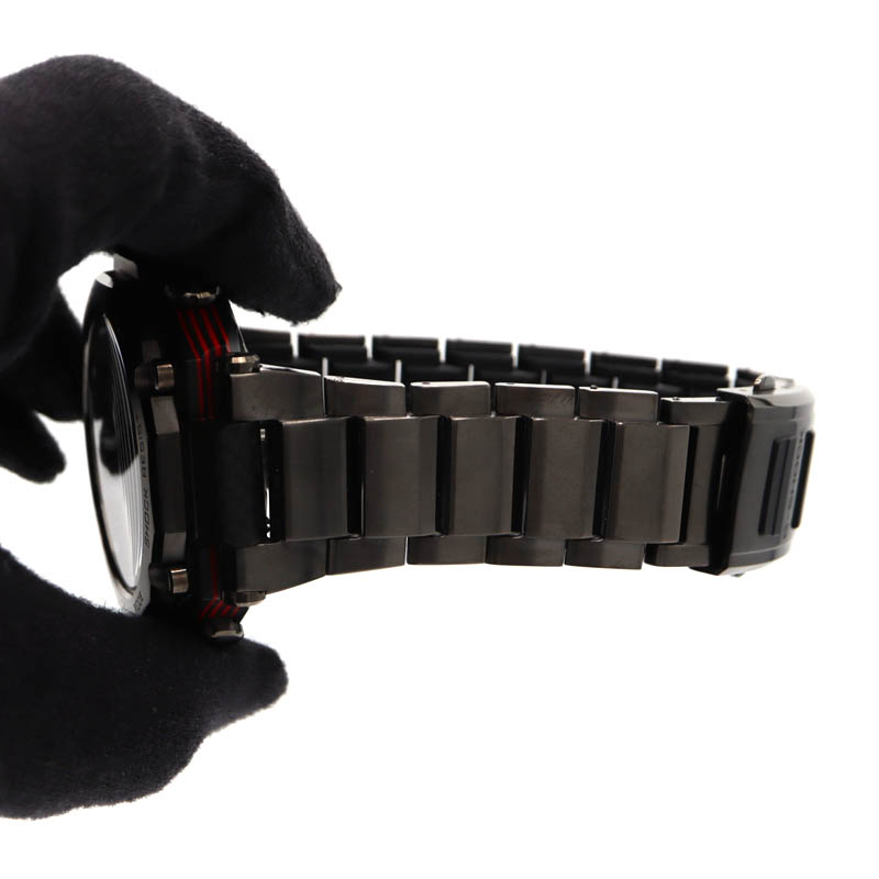 ブラックとレッドを基調とした力強いデザインが特徴で、メタルとカーボン素材を融合したケース構造により、高い耐久性と軽量化を両立。
