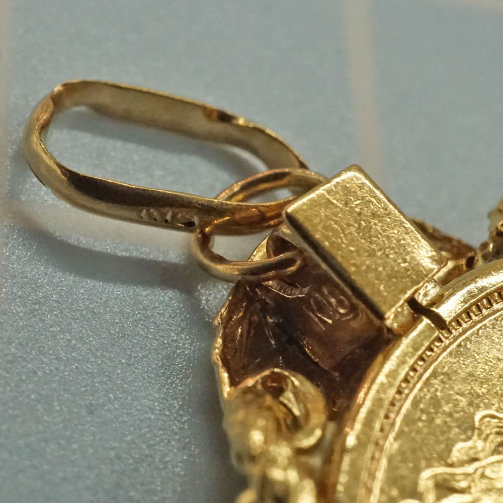 | 商品説明 | K18枠ソブリン金貨 ペンダントトップのご紹介です。
