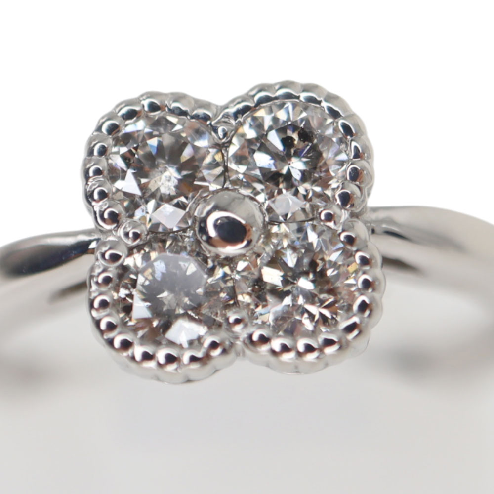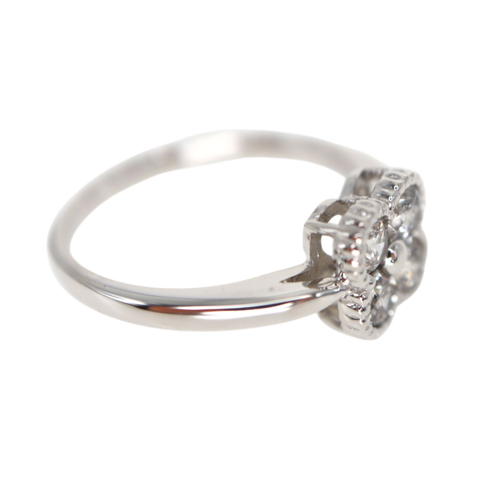 花がモチーフになった可愛らしいデザインのプラチナリング。 シンプルながらも上品なダイヤモンドが美しいです。 普段使いにさりげなくお使い頂けます。