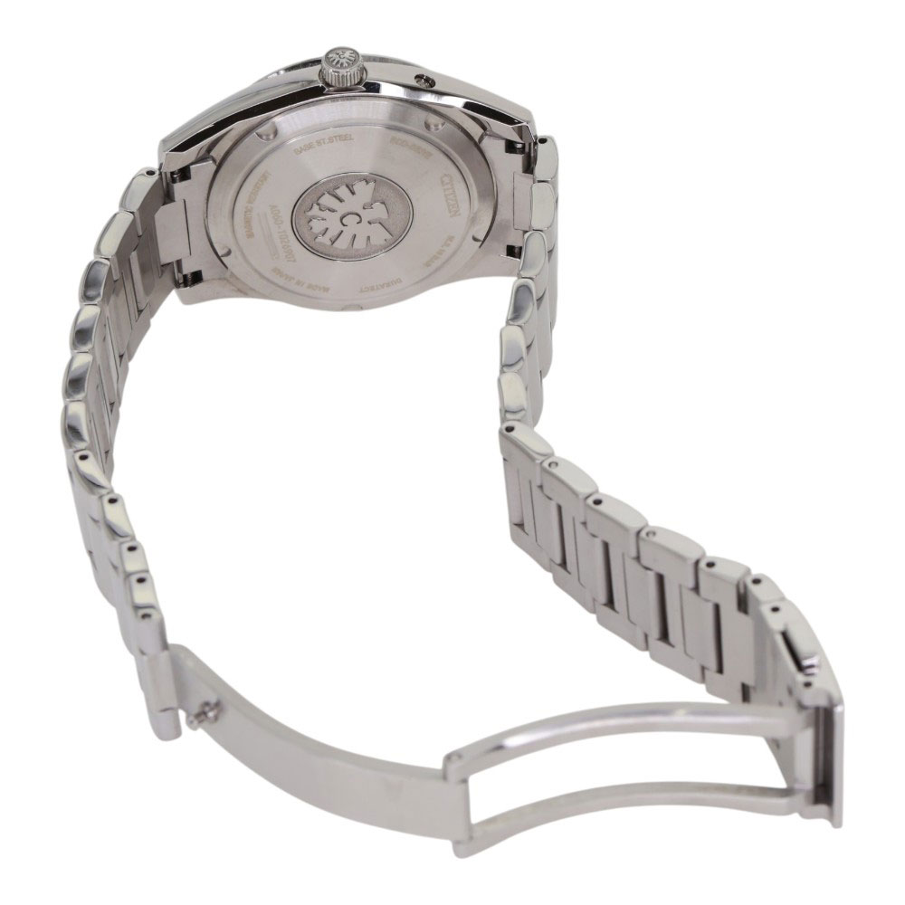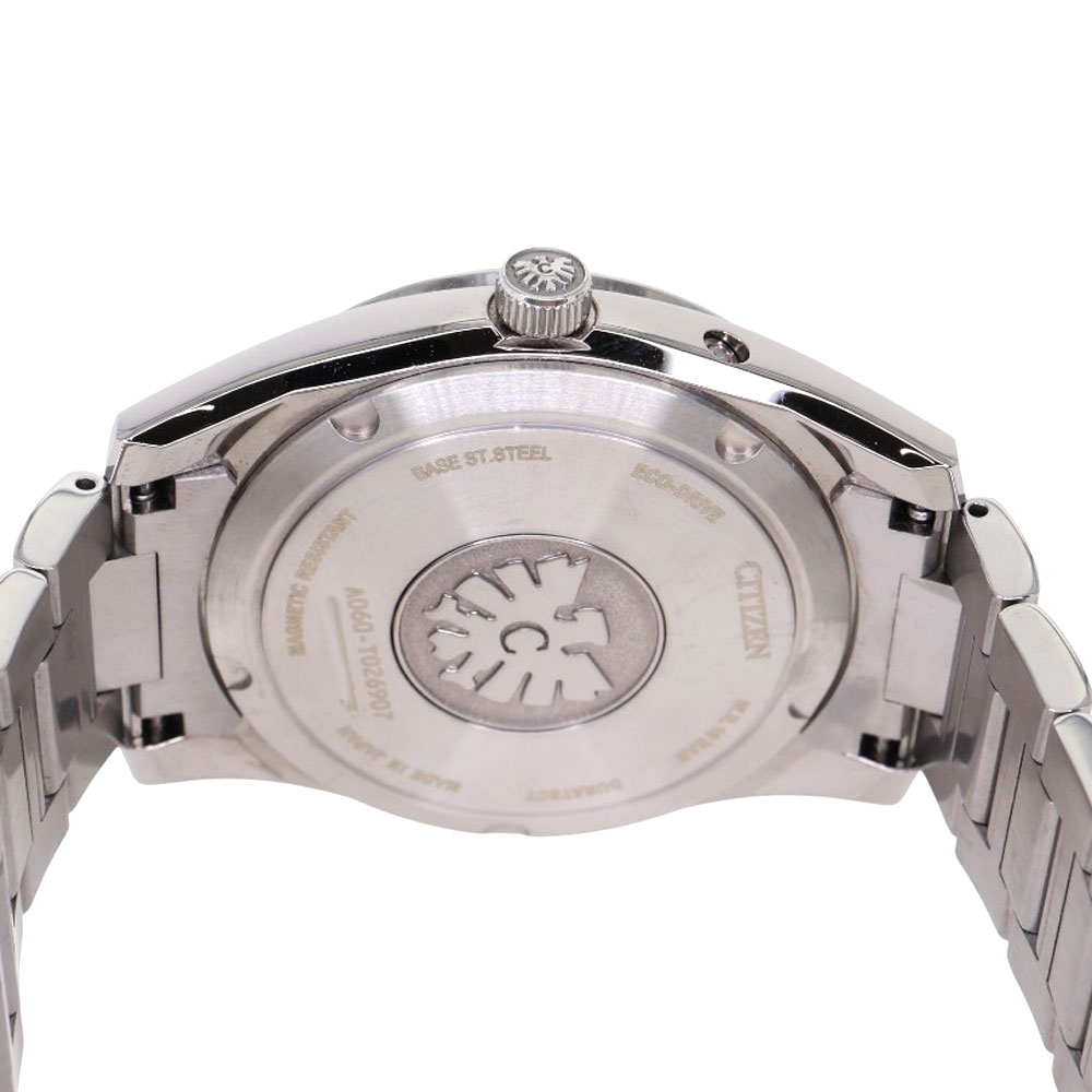 ケースにはステンレスを使用し、表面にはデュラテクトプラチナ加工を施すことで、日常使用での小キズにも強い仕様です。 ムーブメントにはエコ・ドライブのA060を搭載しており、10気圧防水や年差±5秒という高精度を誇ります。