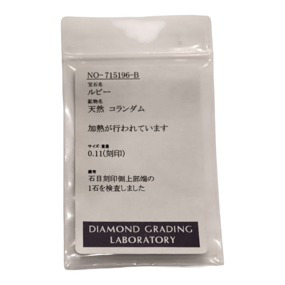 | 重さ | 総重量約:約4.4g ルビー:ct数不明 ダイヤモンド:0.11ct |
