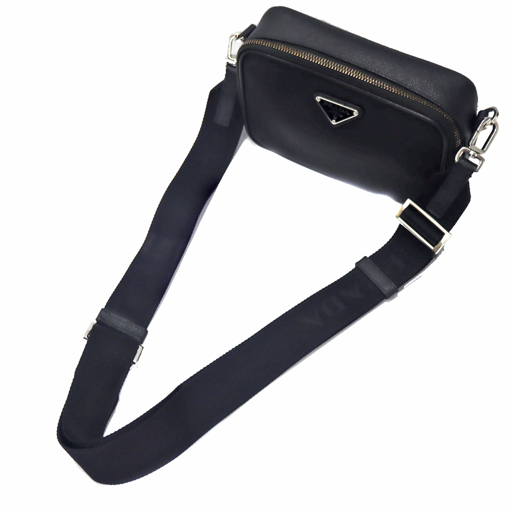 プラダらしいナイロンのモデル。 取り外し可能なポーチ付き・ショルダーストラップにはロゴ入りでおしゃれなデザインとなっています。