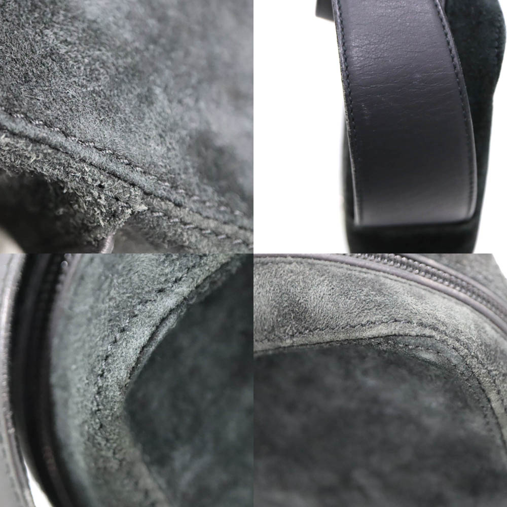柔らかなスエード素材とレザーの組み合わせが高級感を演出し、ブラックカラーが落ち着いた大人の雰囲気を引き立てます。
