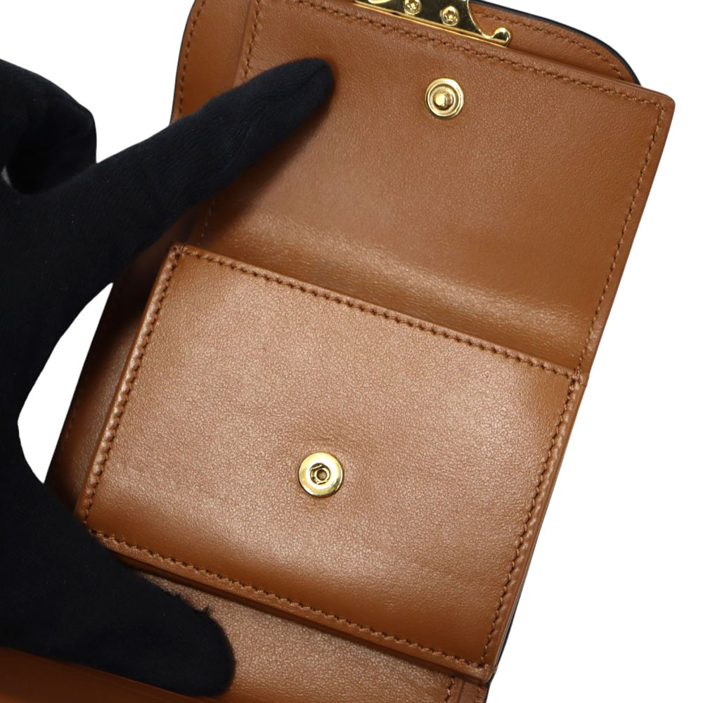 トリオンフモチーフの金具が特徴的なコンパクトウォレットとなります。 コンパクトですが、カードとお札などしっかり収納可能なデザインです。 お探しの方はこの機会に是非いかがでしょうか。