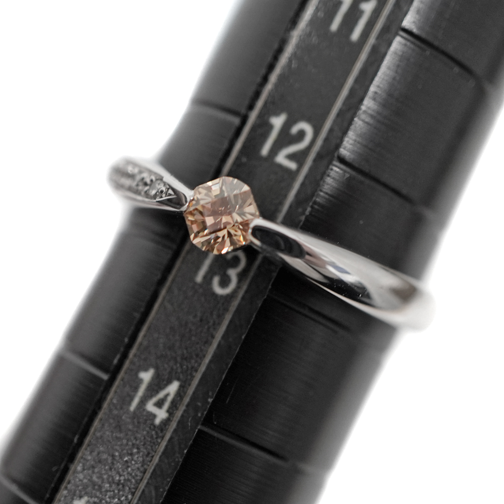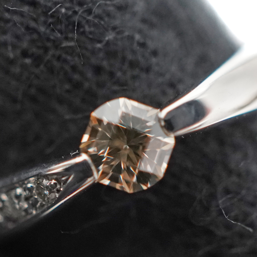 イエローがかった美しいダイヤモンドが輝くリングです。 一粒ダイヤの隣にあしらわれた小粒のダイヤも美しいアイテムです。 お探しの方はこの機会にぜひいかがでしょうか。