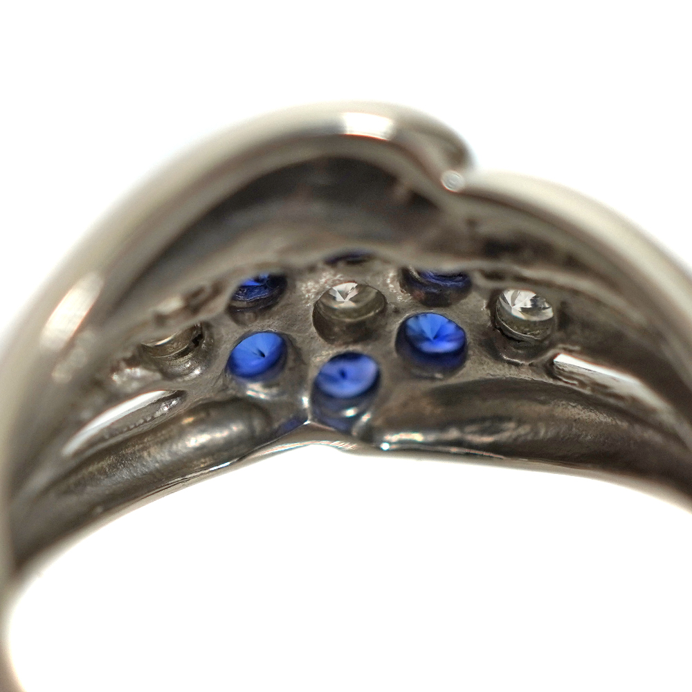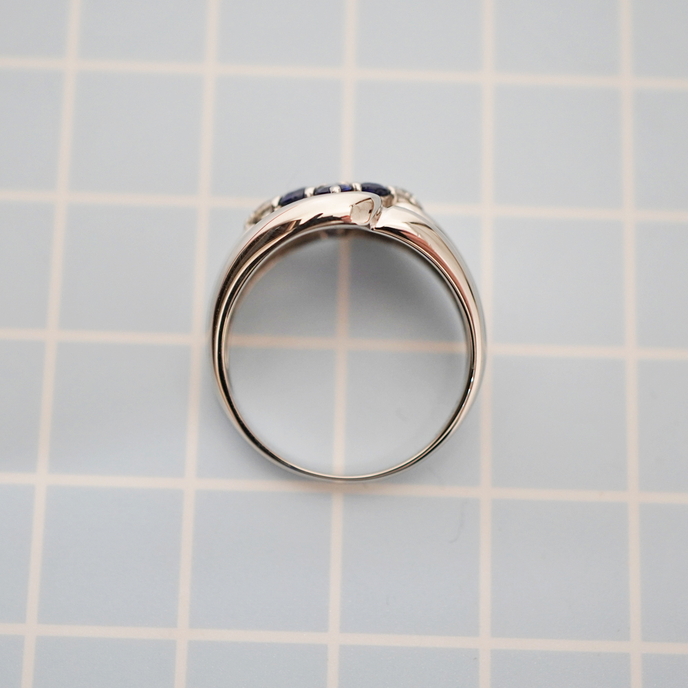 鮮やかで深みのあるブルーと、輝くダイヤモンドのコントラストが美しいデザインリングです。 お手元のアクセントにぜひいかがでしょうか。