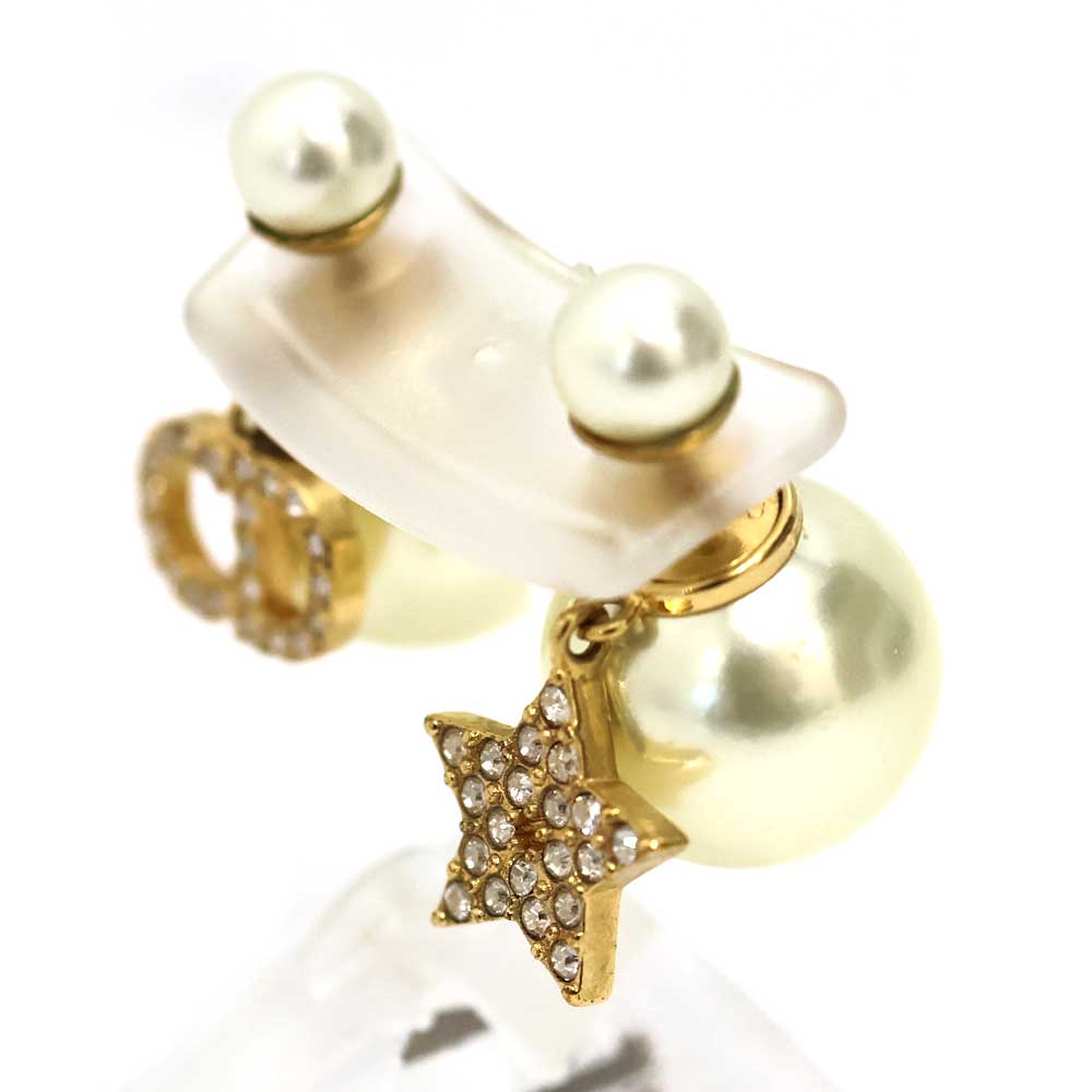 ディオールのアイコニックな「CDロゴ」とブランドを象徴するスターを組み合わせたエレガントなピアスです。 ゴールドトーンにクリスタルをあしらい、左右でモチーフが異なるアシンメトリーデザインが特徴で、耳元に遊び心のあるアクセントを加えます。 この機会に是非いかがでしょうか。