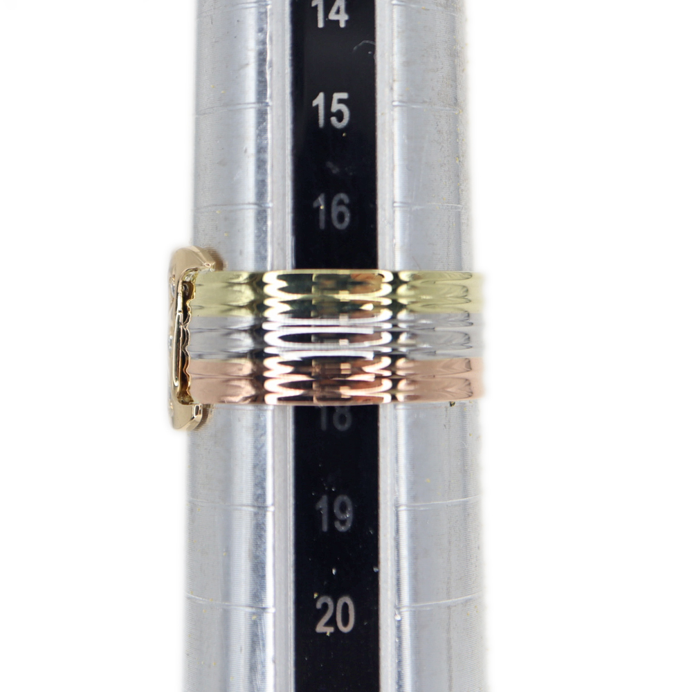ゴールドとプラチナが使用されたスリーカラーの贅沢なアイテム。 中央にはダイヤモンドもセッティングされており、お手元が華やぐ一品です。 この機会に是非いかがでしょうか。