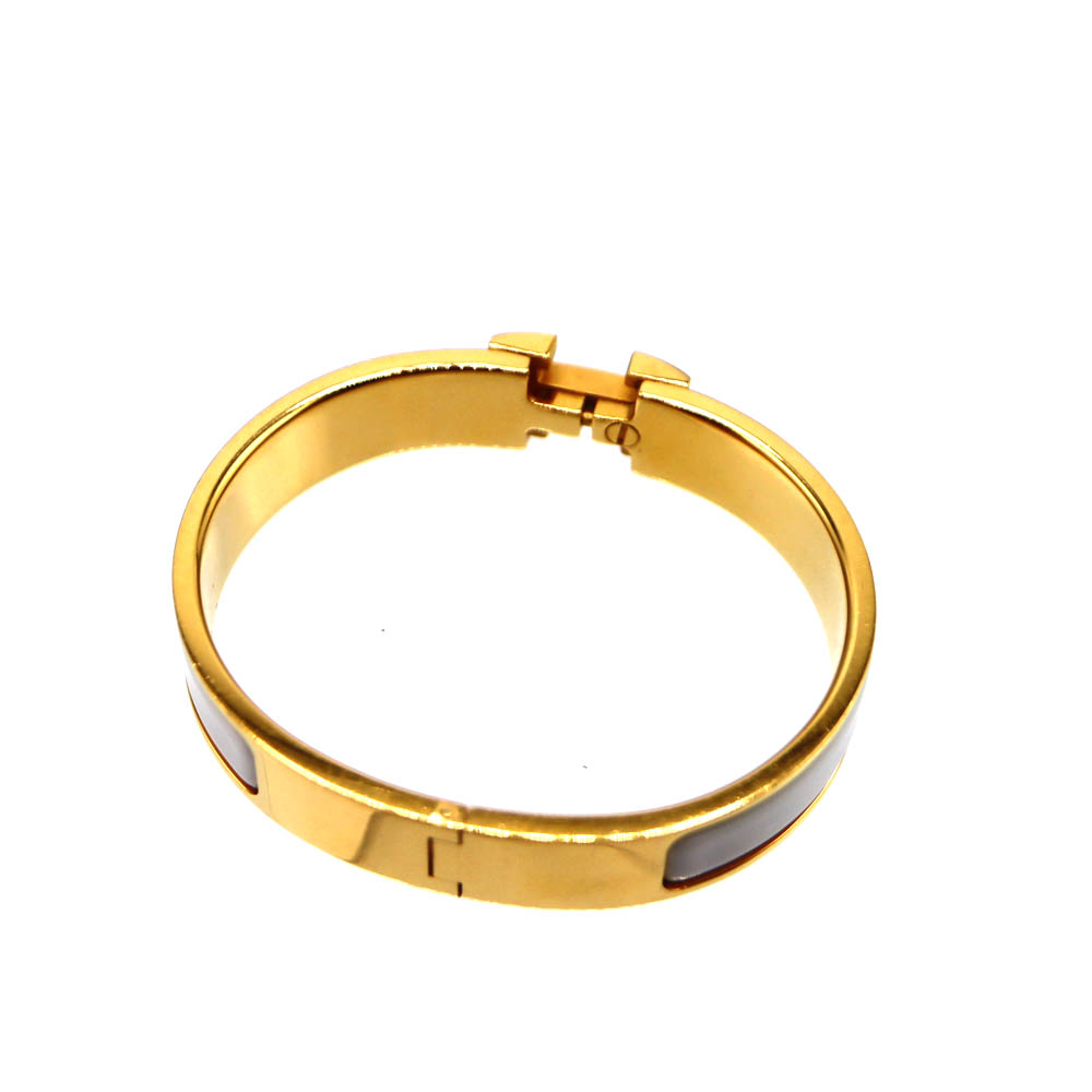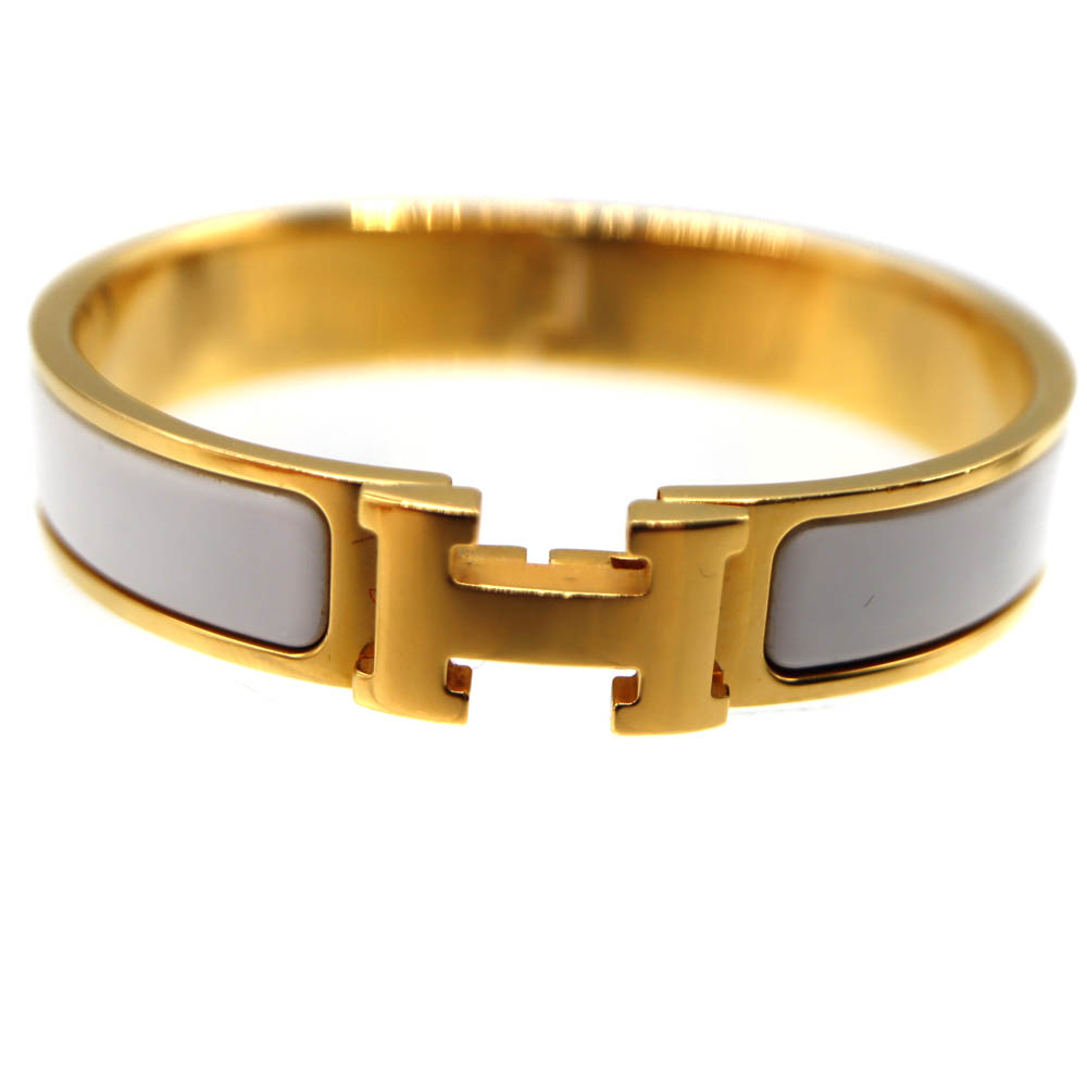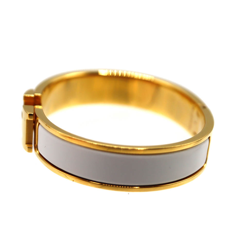 ホワイトカラーのエナメルにHモチーフのゴールド金具が映える、エルメスらしい洗練されたデザイン。