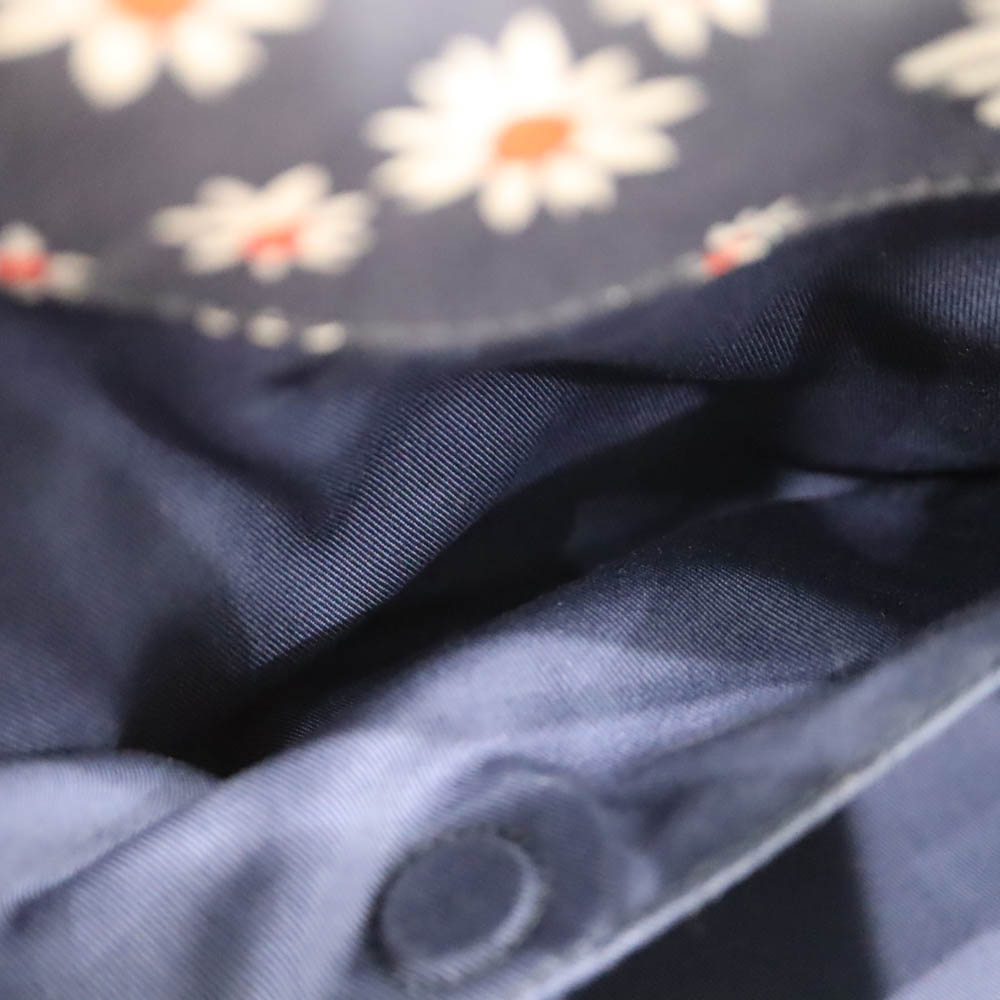 落ち着いたネイビーカラーをベースに、華やかな花柄デザインが映えるフェミニンな一品です。