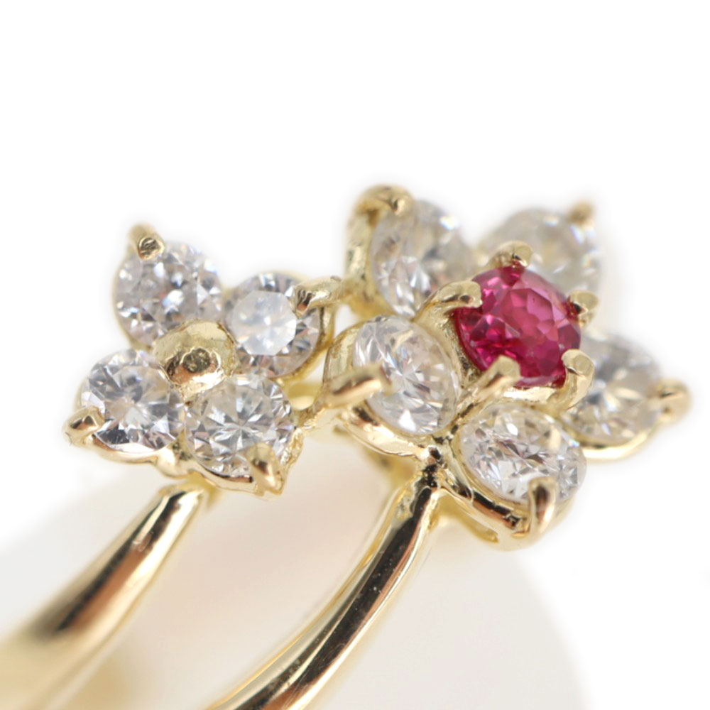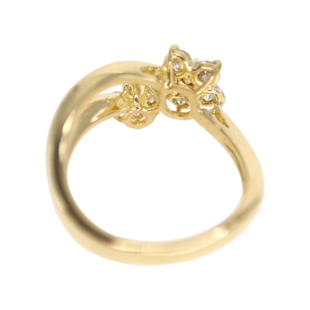 可愛らしいお花のモチーフが二つ付いているリングです。 お花の中央にはルビーがアクセントにセッティングされています。 柔らかい曲線のデザインが指元を華奢に魅せてくれます。