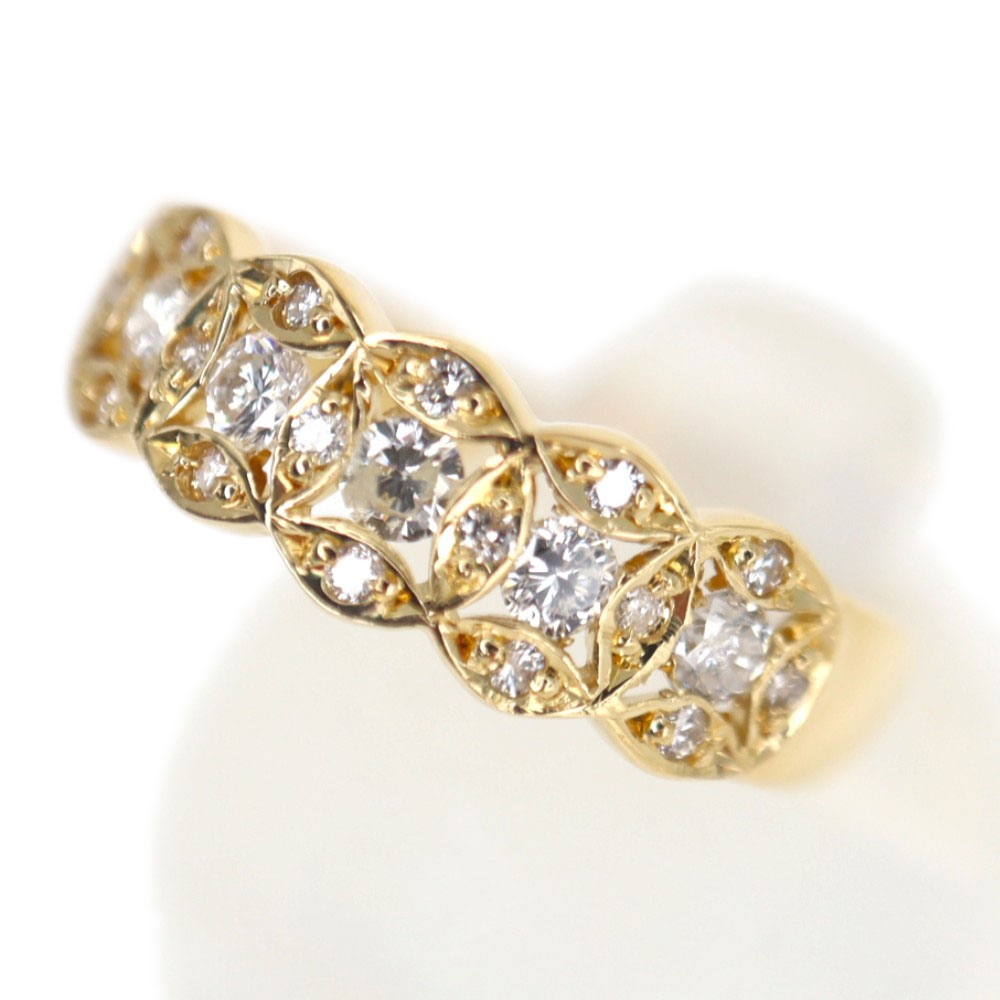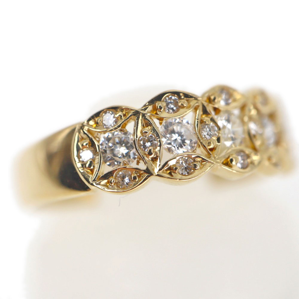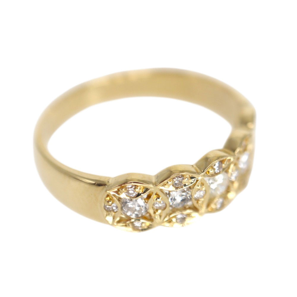 5つのダイヤモンドが並んだリング。 それぞれ星のようなデザインが周りに施されていて、デザイン性もあります。 お手持ちのリングに重ね付けしてもお楽しみいただけます。