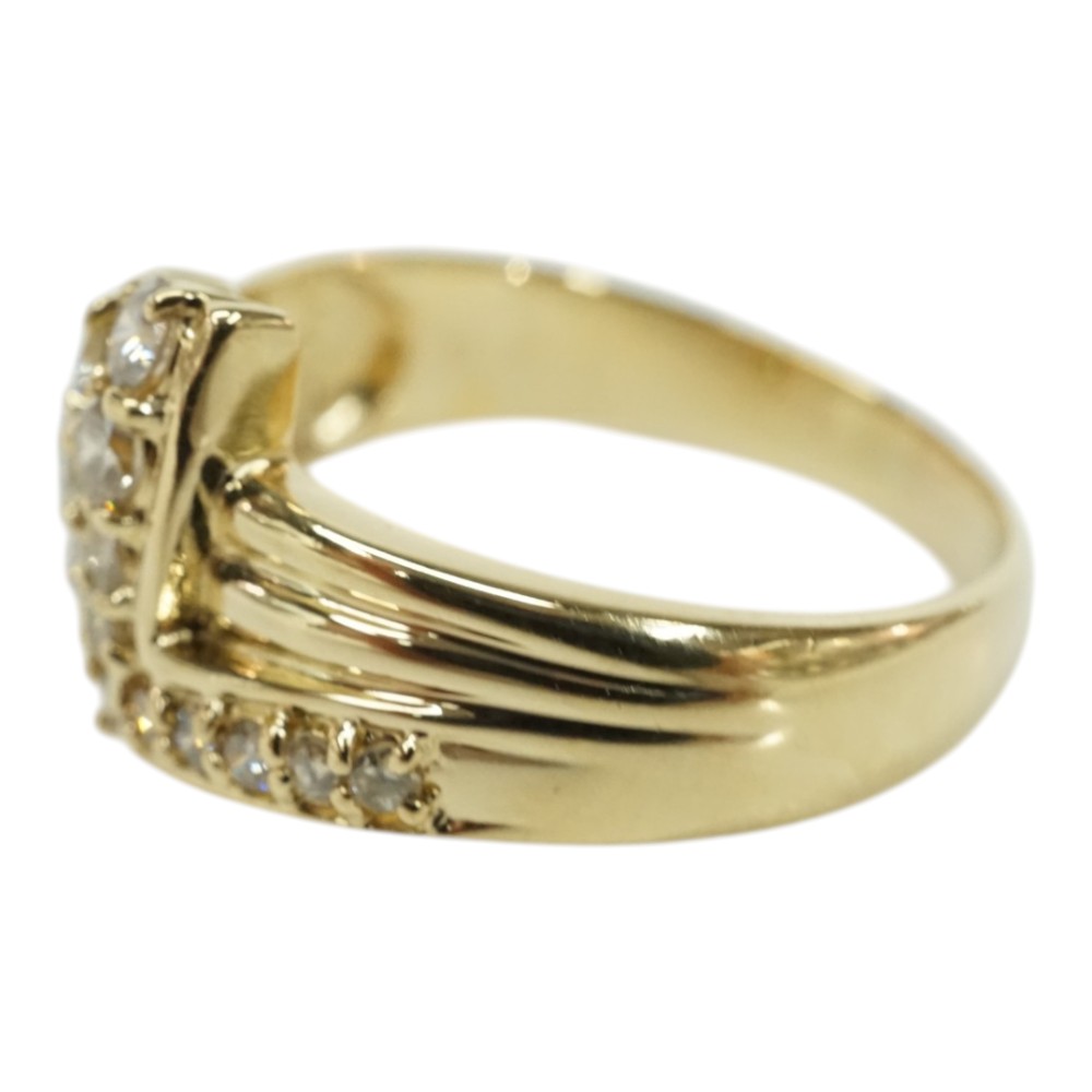 ダイヤモンドが施された存在感のある上品なデザインリングです。 お手元のアクセントにぜひいかがでしょうか。